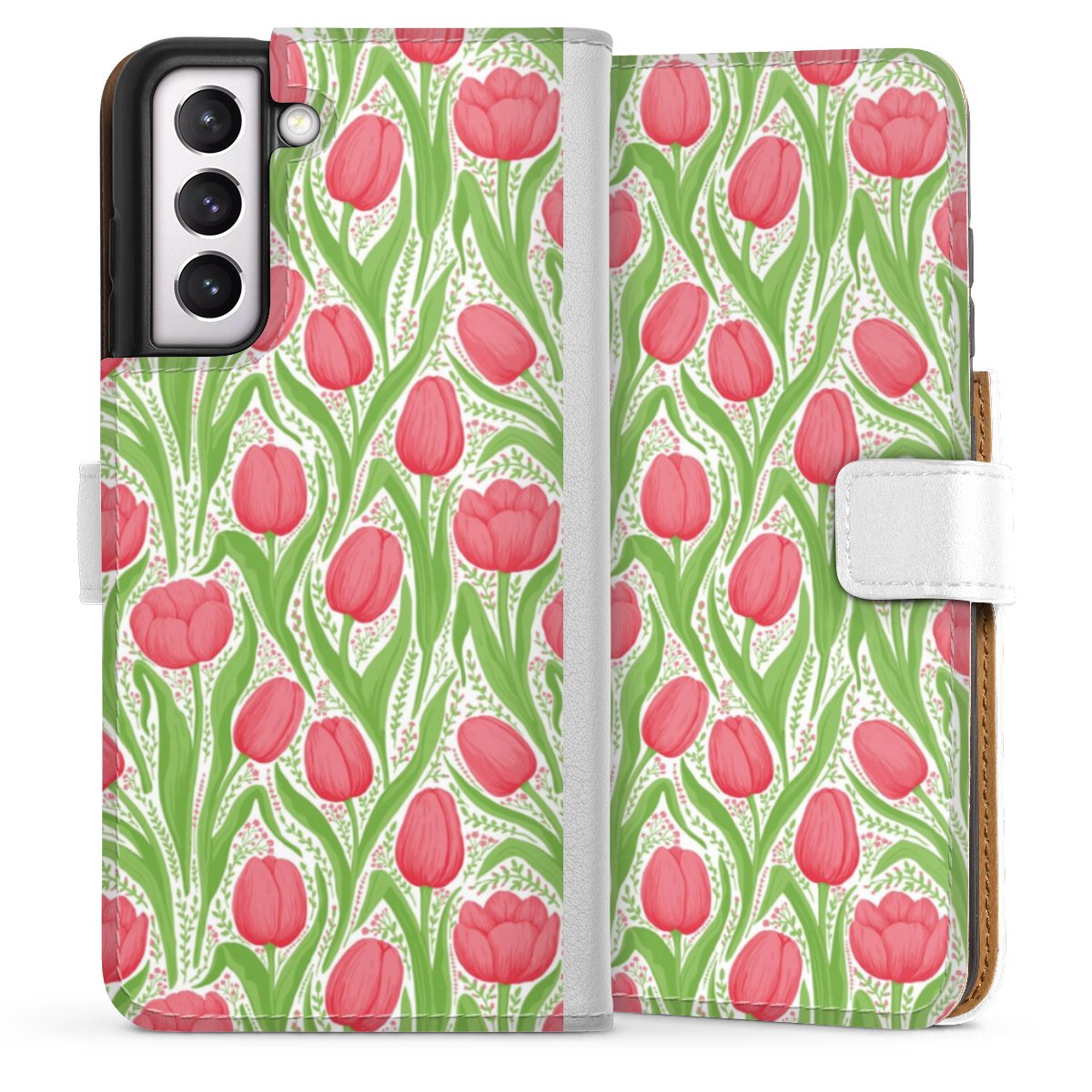 For our Sideflip Case we are using our advanced direct printing technology. The back and frontside are fully printabale, the inside of the phone bag is left unprinted. You can order the phone case without print, printed completely or also with a partial print.