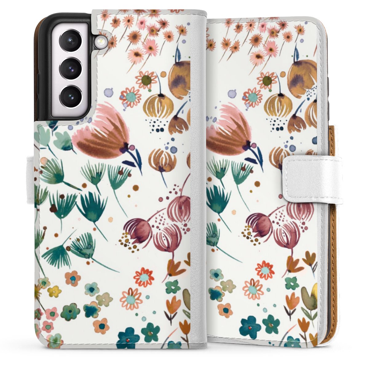 For our Sideflip Case we are using our advanced direct printing technology. The back and frontside are fully printabale, the inside of the phone bag is left unprinted. You can order the phone case without print, printed completely or also with a partial print.