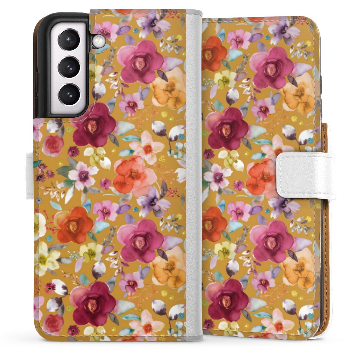 For our Sideflip Case we are using our advanced direct printing technology. The back and frontside are fully printabale, the inside of the phone bag is left unprinted. You can order the phone case without print, printed completely or also with a partial print.