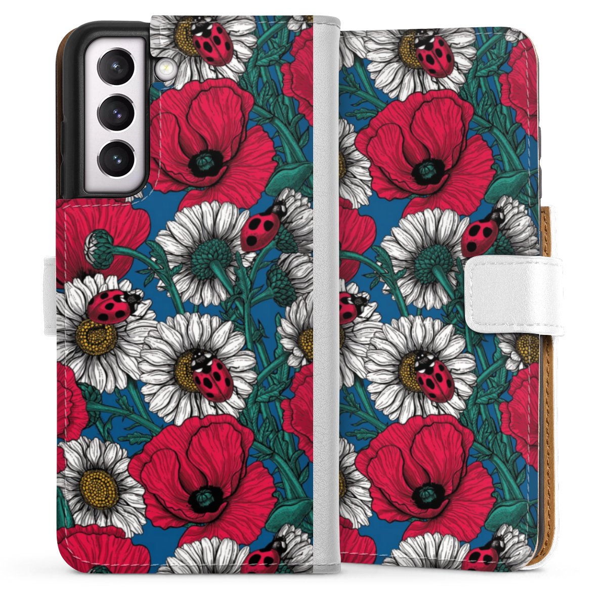 For our Sideflip Case we are using our advanced direct printing technology. The back and frontside are fully printabale, the inside of the phone bag is left unprinted. You can order the phone case without print, printed completely or also with a partial print.