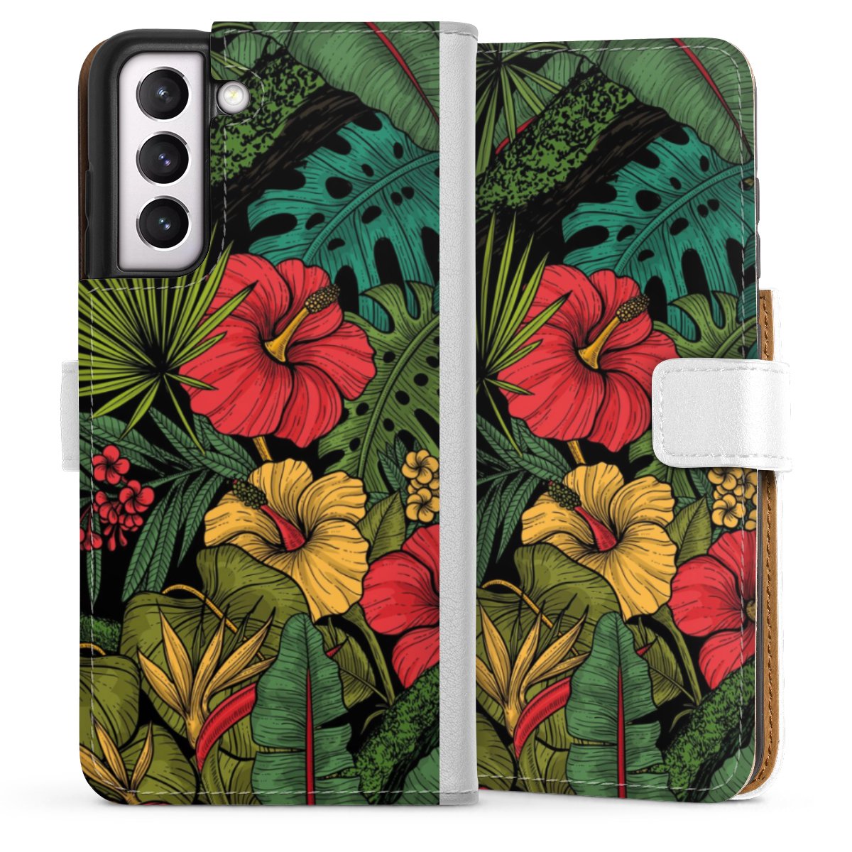 For our Sideflip Case we are using our advanced direct printing technology. The back and frontside are fully printabale, the inside of the phone bag is left unprinted. You can order the phone case without print, printed completely or also with a partial print.