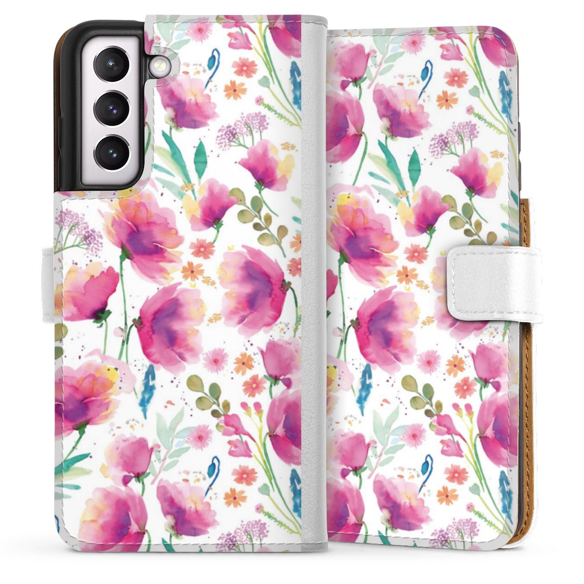 For our Sideflip Case we are using our advanced direct printing technology. The back and frontside are fully printabale, the inside of the phone bag is left unprinted. You can order the phone case without print, printed completely or also with a partial print.