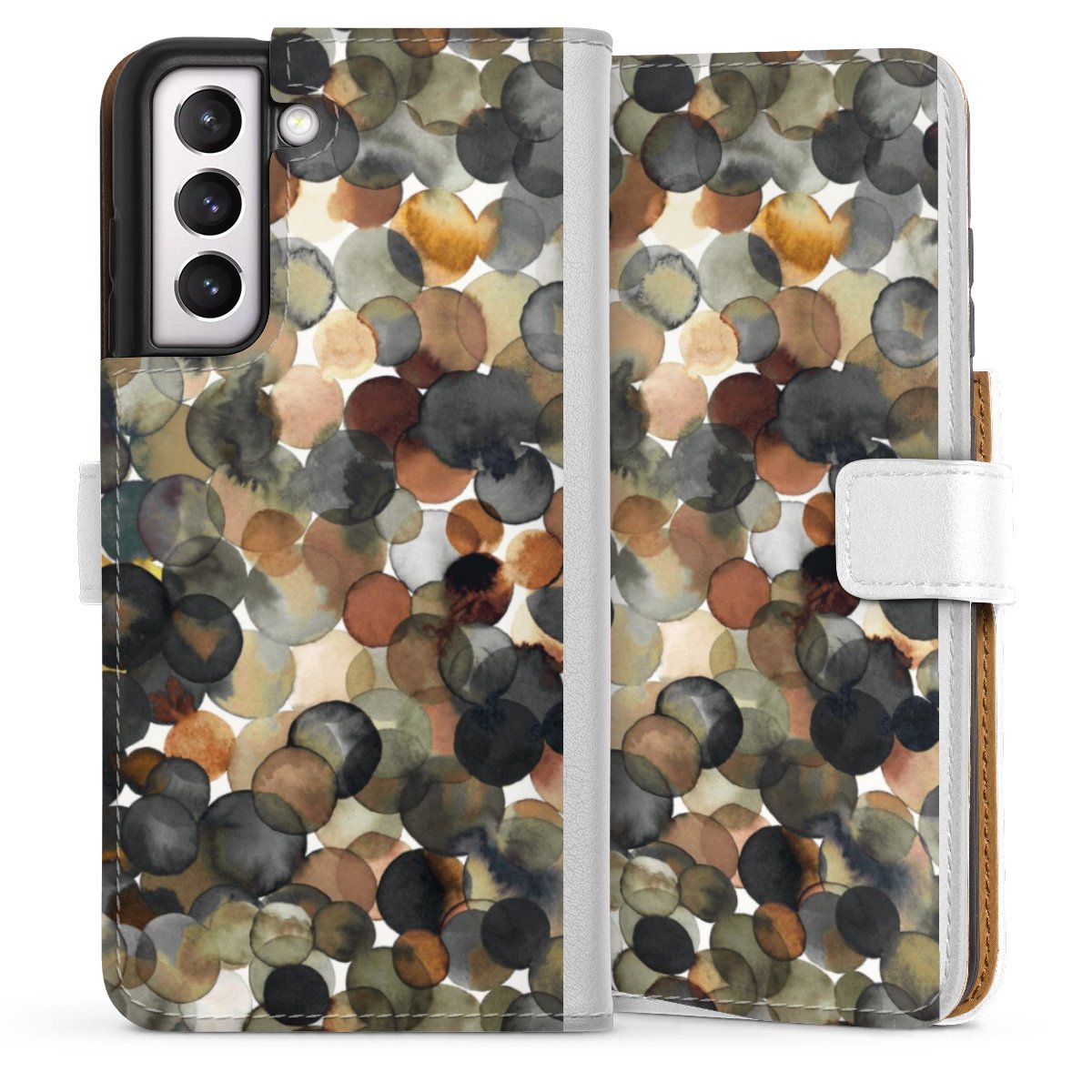 For our Sideflip Case we are using our advanced direct printing technology. The back and frontside are fully printabale, the inside of the phone bag is left unprinted. You can order the phone case without print, printed completely or also with a partial print.