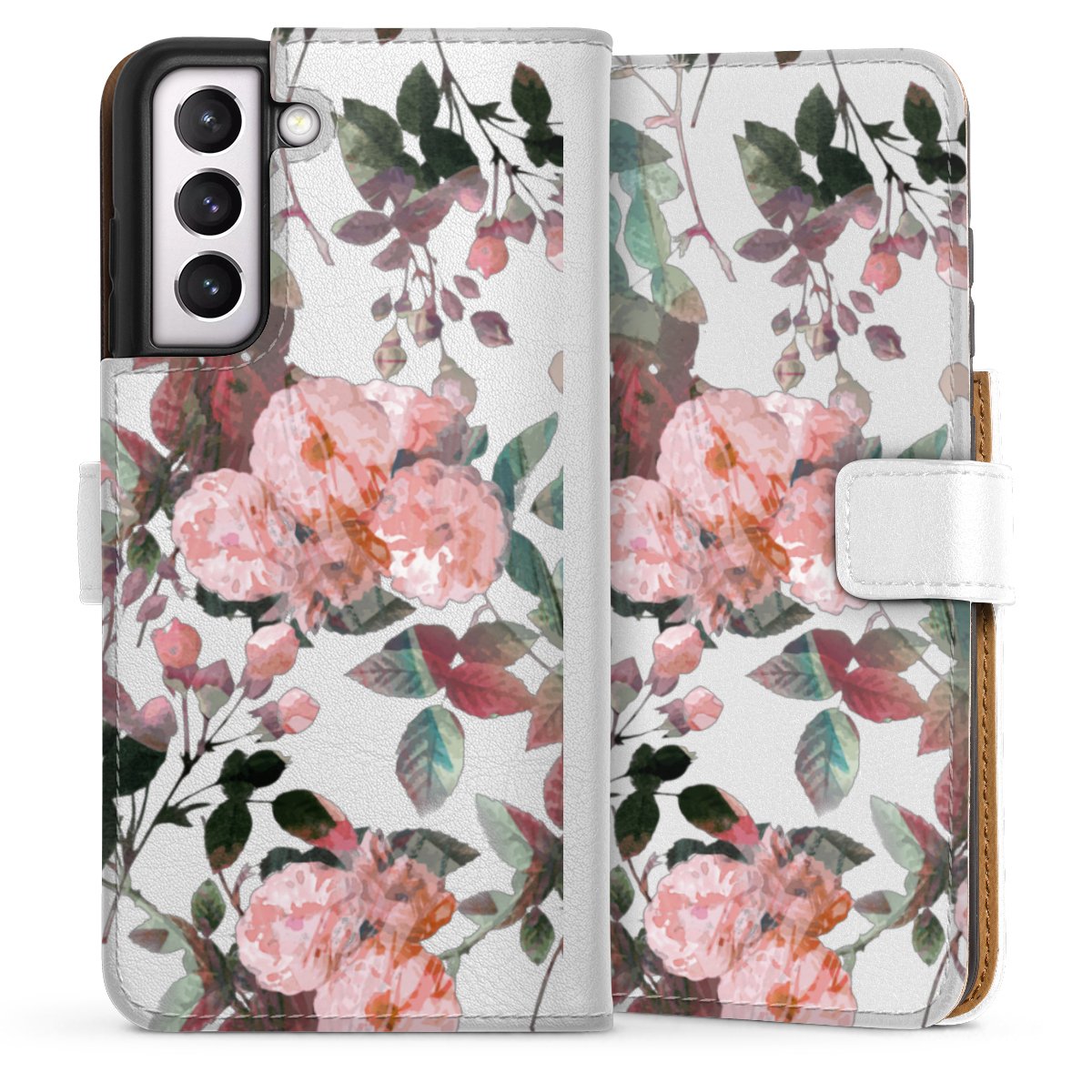 For our Sideflip Case we are using our advanced direct printing technology. The back and frontside are fully printabale, the inside of the phone bag is left unprinted. You can order the phone case without print, printed completely or also with a partial print.