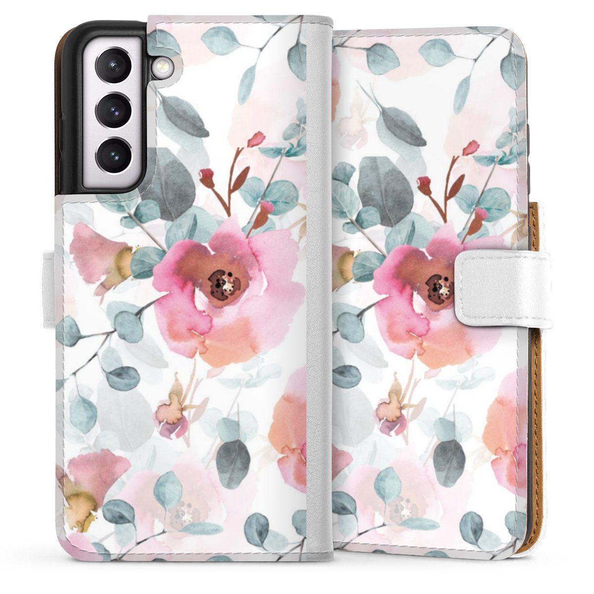 For our Sideflip Case we are using our advanced direct printing technology. The back and frontside are fully printabale, the inside of the phone bag is left unprinted. You can order the phone case without print, printed completely or also with a partial print.