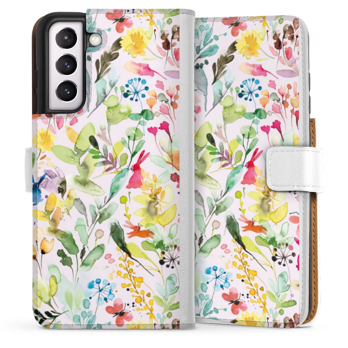 For our Sideflip Case we are using our advanced direct printing technology. The back and frontside are fully printabale, the inside of the phone bag is left unprinted. You can order the phone case without print, printed completely or also with a partial print.