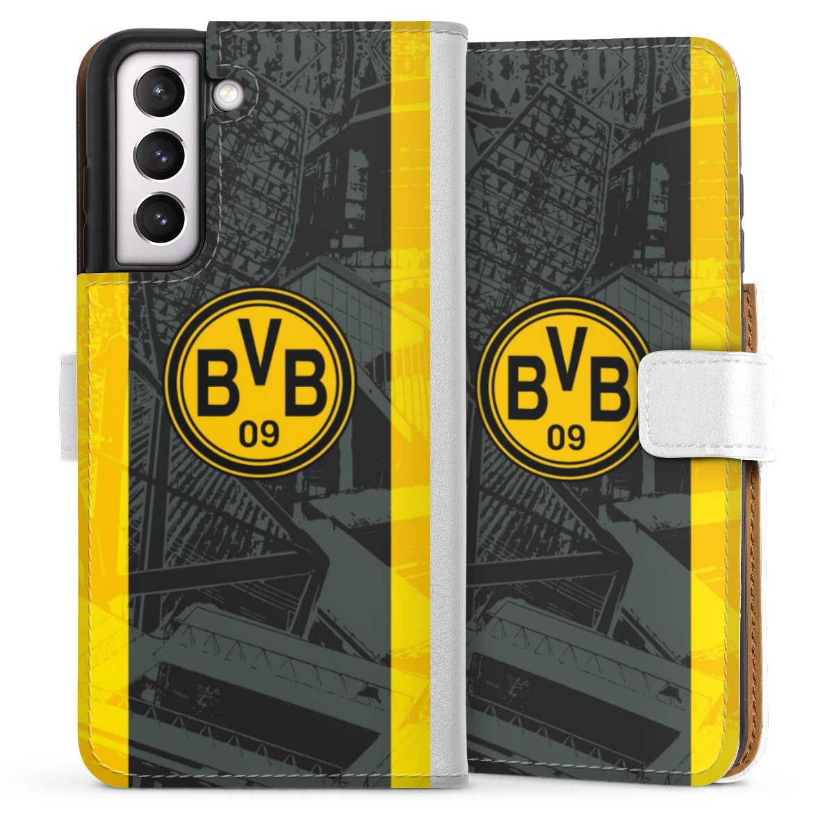 For our Sideflip Case we are using our advanced direct printing technology. The back and frontside are fully printabale, the inside of the phone bag is left unprinted. You can order the phone case without print, printed completely or also with a partial print.