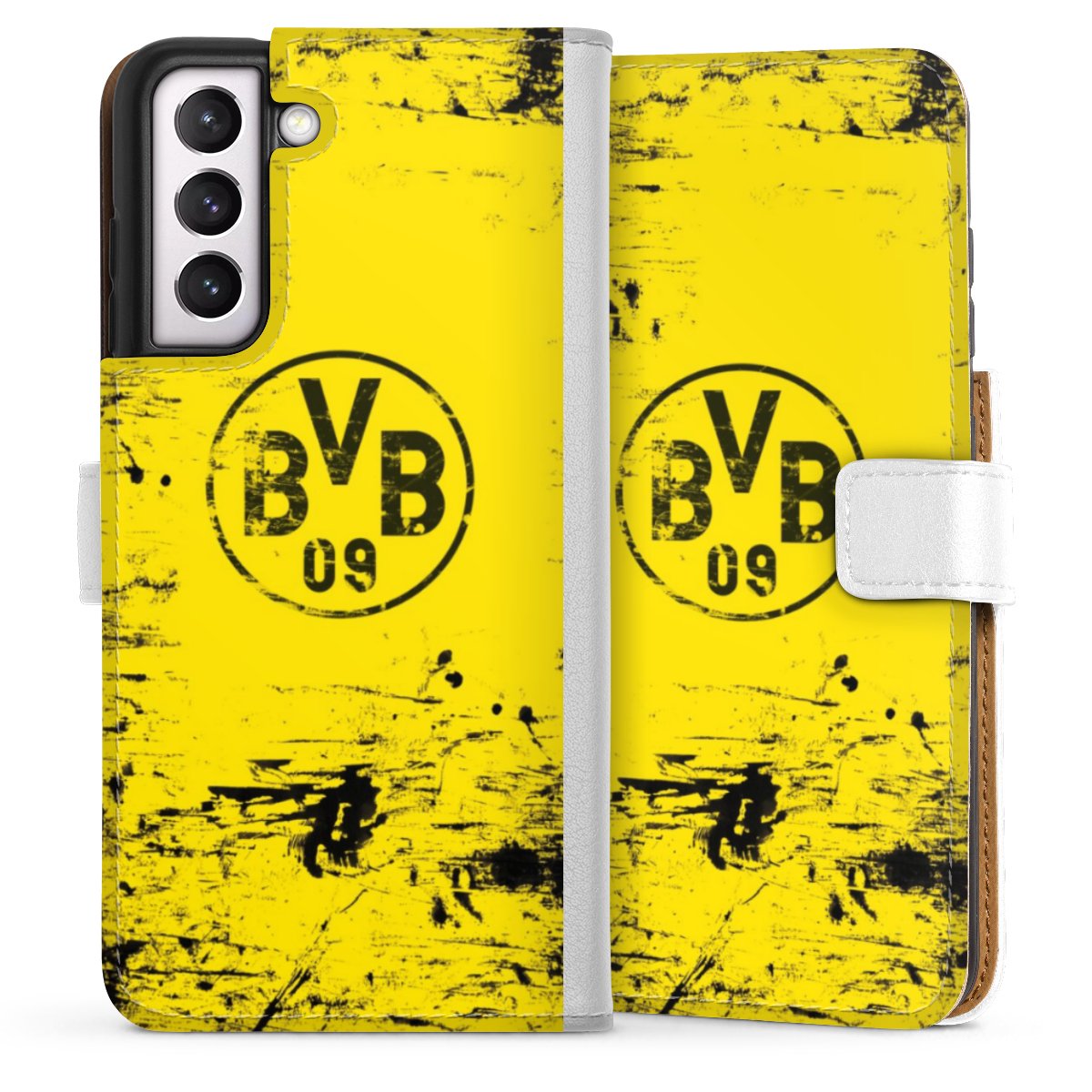 For our Sideflip Case we are using our advanced direct printing technology. The back and frontside are fully printabale, the inside of the phone bag is left unprinted. You can order the phone case without print, printed completely or also with a partial print.