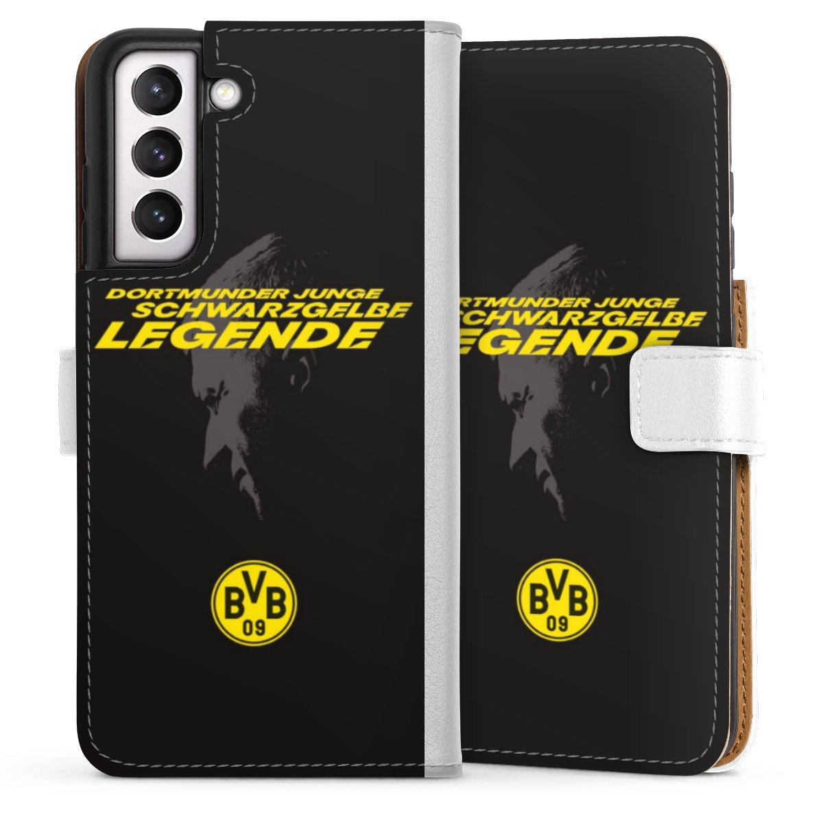 For our Sideflip Case we are using our advanced direct printing technology. The back and frontside are fully printabale, the inside of the phone bag is left unprinted. You can order the phone case without print, printed completely or also with a partial print.