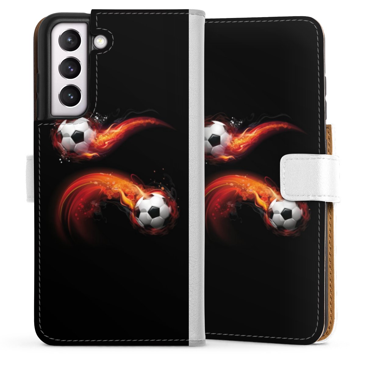 For our Sideflip Case we are using our advanced direct printing technology. The back and frontside are fully printabale, the inside of the phone bag is left unprinted. You can order the phone case without print, printed completely or also with a partial print.