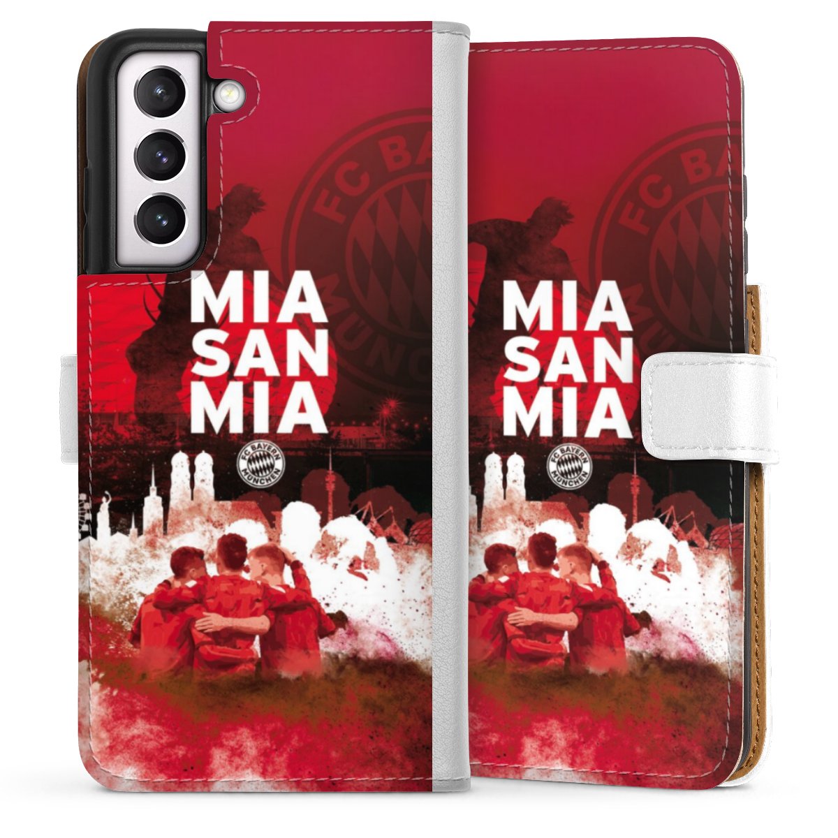 For our Sideflip Case we are using our advanced direct printing technology. The back and frontside are fully printabale, the inside of the phone bag is left unprinted. You can order the phone case without print, printed completely or also with a partial print.