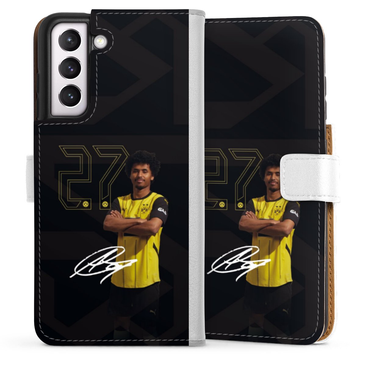 For our Sideflip Case we are using our advanced direct printing technology. The back and frontside are fully printabale, the inside of the phone bag is left unprinted. You can order the phone case without print, printed completely or also with a partial print.