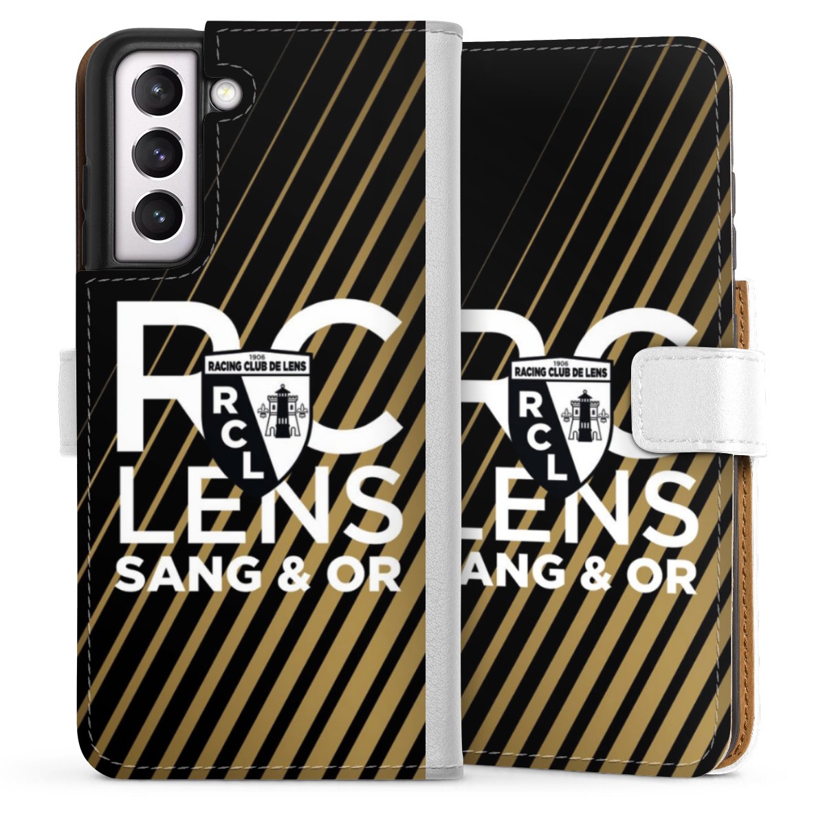 For our Sideflip Case we are using our advanced direct printing technology. The back and frontside are fully printabale, the inside of the phone bag is left unprinted. You can order the phone case without print, printed completely or also with a partial print.