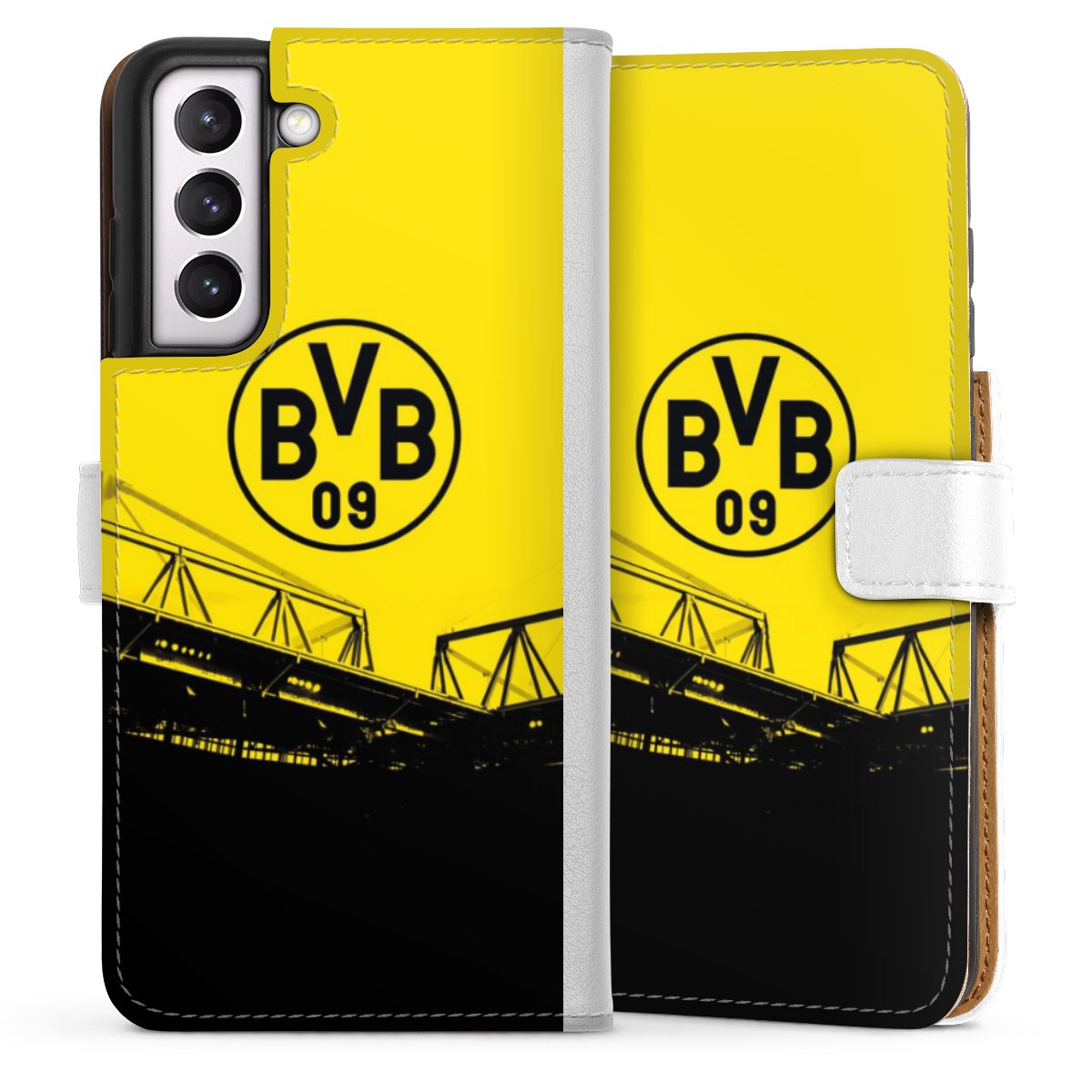 For our Sideflip Case we are using our advanced direct printing technology. The back and frontside are fully printabale, the inside of the phone bag is left unprinted. You can order the phone case without print, printed completely or also with a partial print.