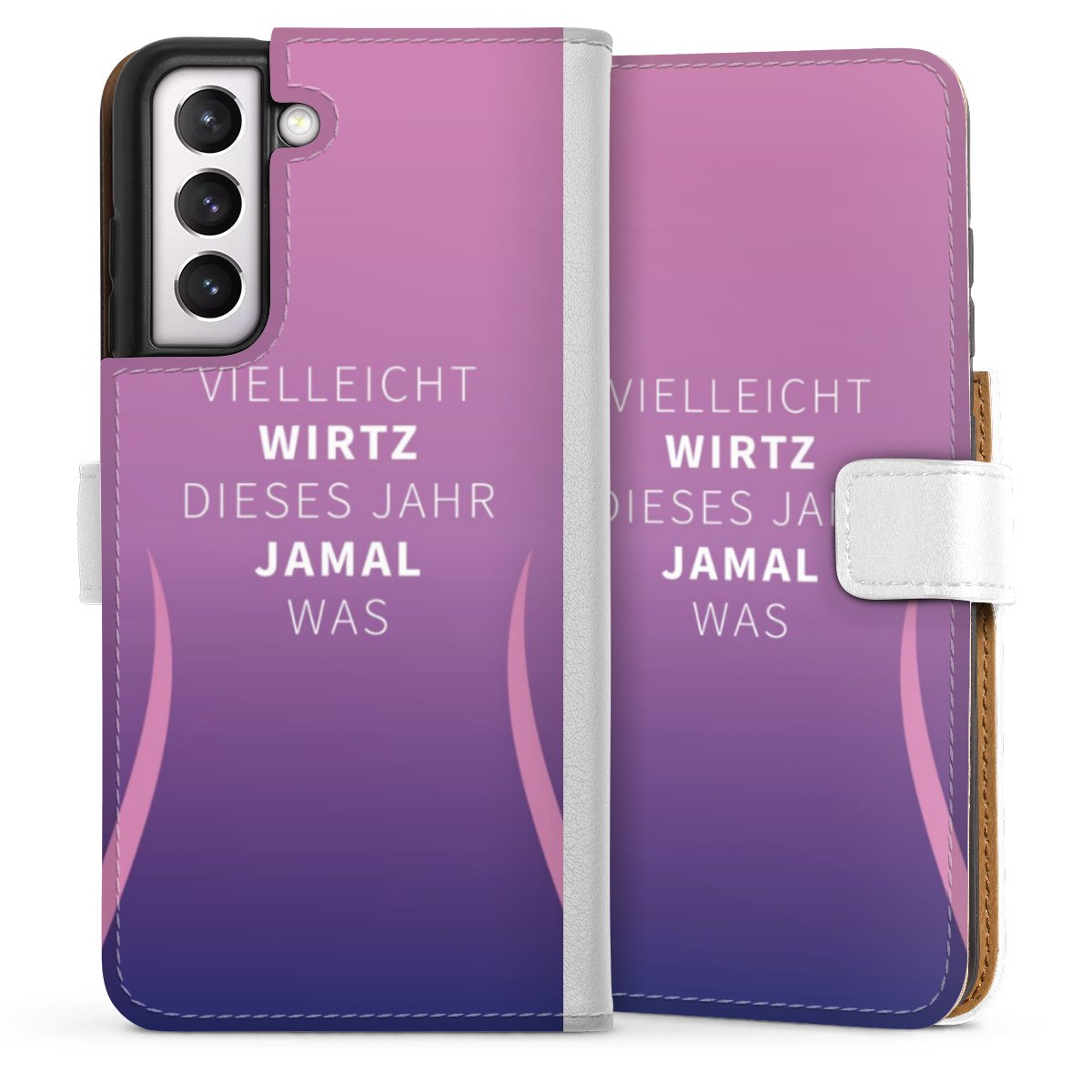 For our Sideflip Case we are using our advanced direct printing technology. The back and frontside are fully printabale, the inside of the phone bag is left unprinted. You can order the phone case without print, printed completely or also with a partial print.