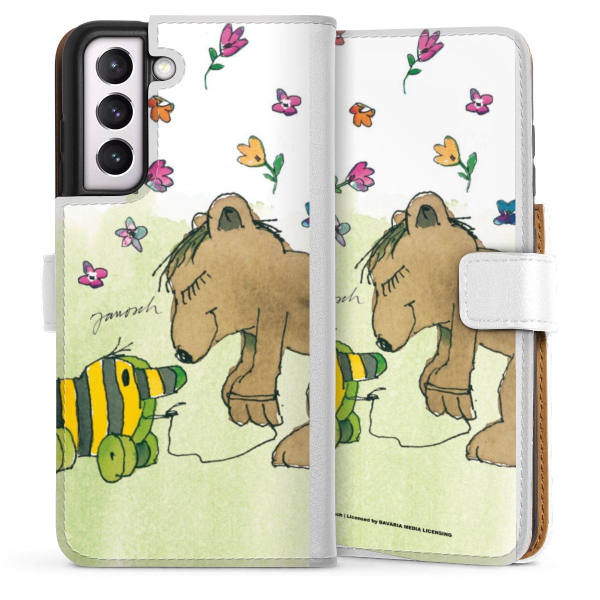 For our Sideflip Case we are using our advanced direct printing technology. The back and frontside are fully printabale, the inside of the phone bag is left unprinted. You can order the phone case without print, printed completely or also with a partial print.