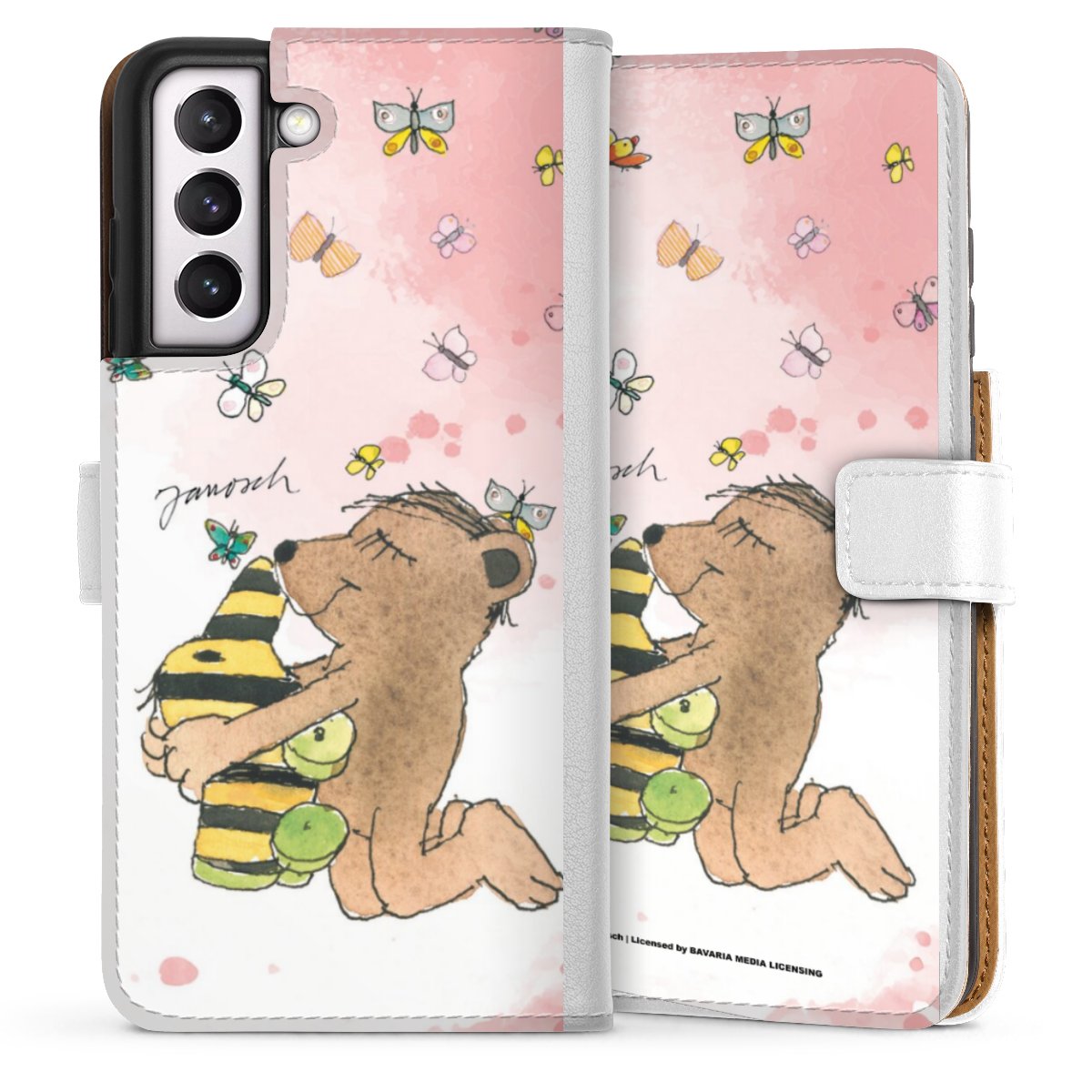 For our Sideflip Case we are using our advanced direct printing technology. The back and frontside are fully printabale, the inside of the phone bag is left unprinted. You can order the phone case without print, printed completely or also with a partial print.