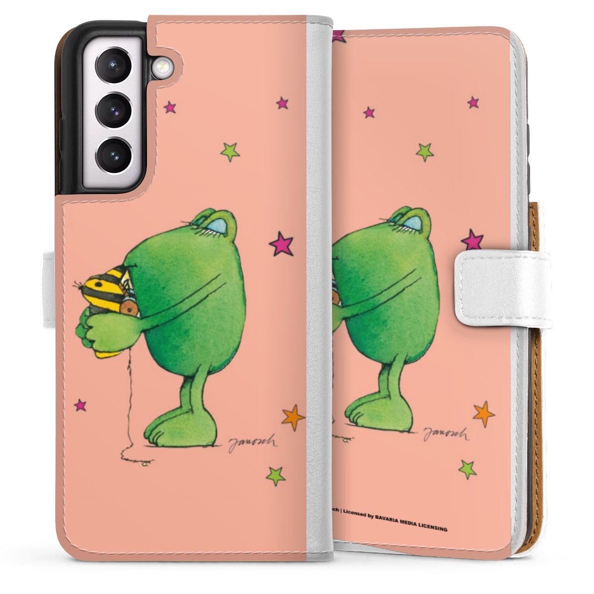 For our Sideflip Case we are using our advanced direct printing technology. The back and frontside are fully printabale, the inside of the phone bag is left unprinted. You can order the phone case without print, printed completely or also with a partial print.