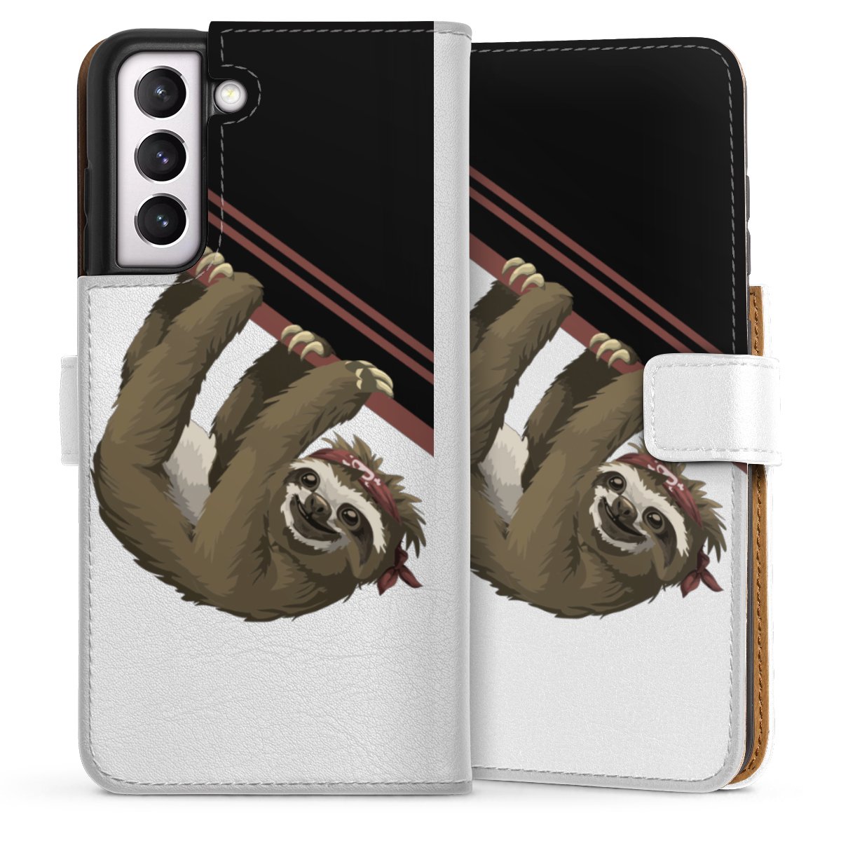 For our Sideflip Case we are using our advanced direct printing technology. The back and frontside are fully printabale, the inside of the phone bag is left unprinted. You can order the phone case without print, printed completely or also with a partial print.