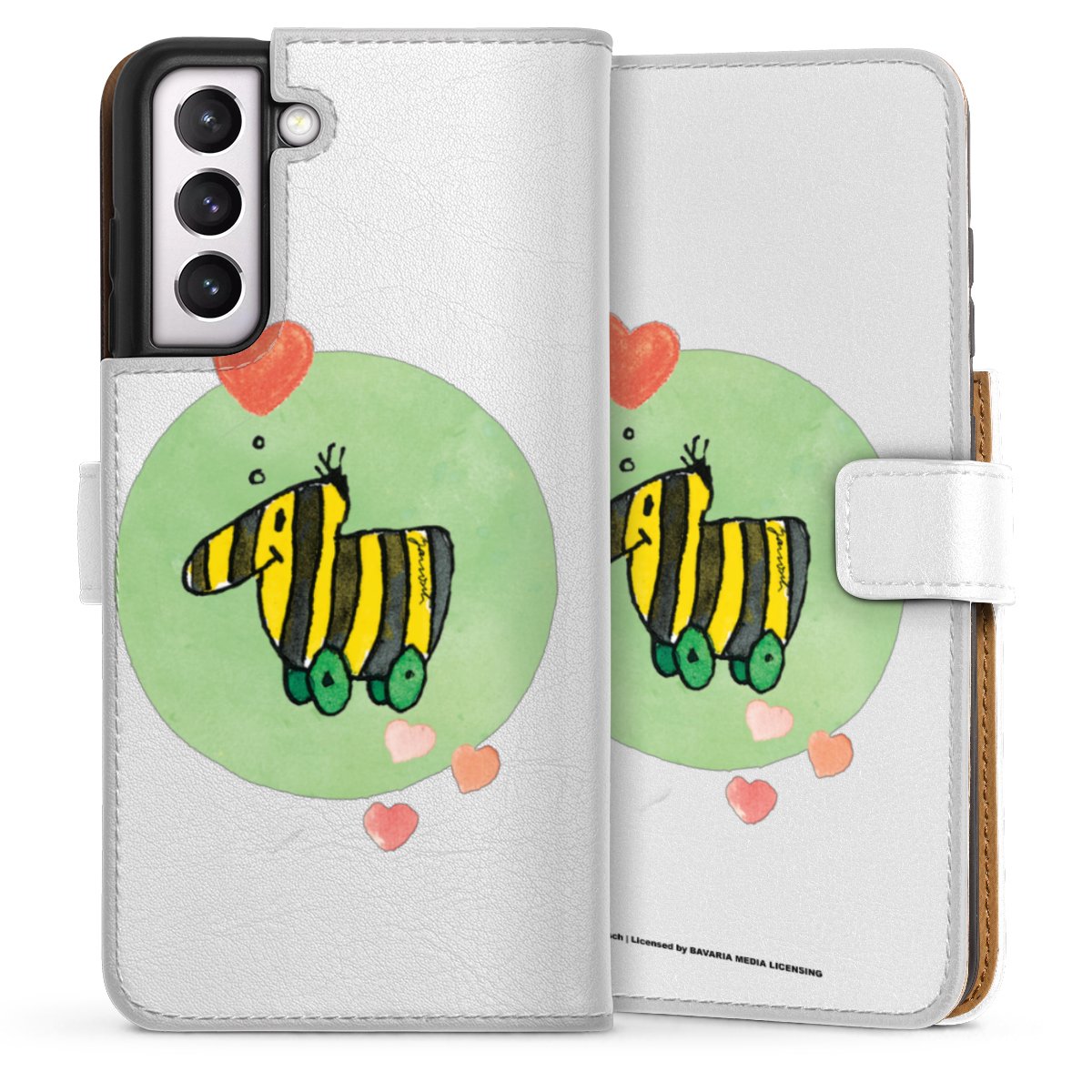 For our Sideflip Case we are using our advanced direct printing technology. The back and frontside are fully printabale, the inside of the phone bag is left unprinted. You can order the phone case without print, printed completely or also with a partial print.