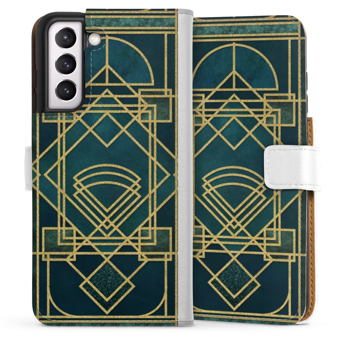 For our Sideflip Case we are using our advanced direct printing technology. The back and frontside are fully printabale, the inside of the phone bag is left unprinted. You can order the phone case without print, printed completely or also with a partial print.