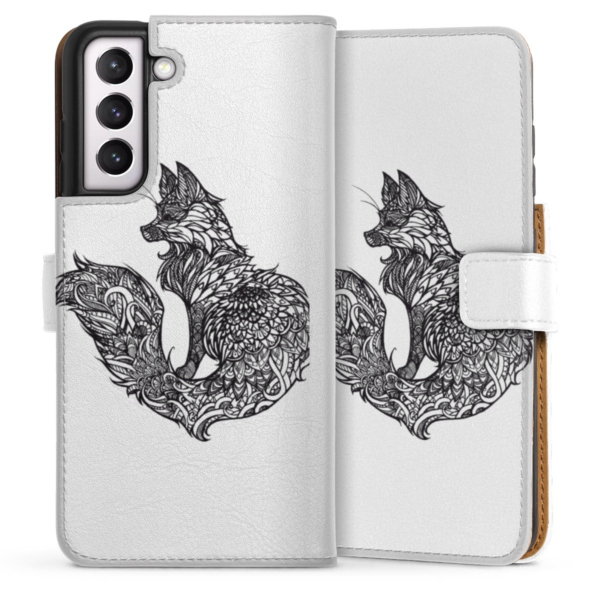 For our Sideflip Case we are using our advanced direct printing technology. The back and frontside are fully printabale, the inside of the phone bag is left unprinted. You can order the phone case without print, printed completely or also with a partial print.