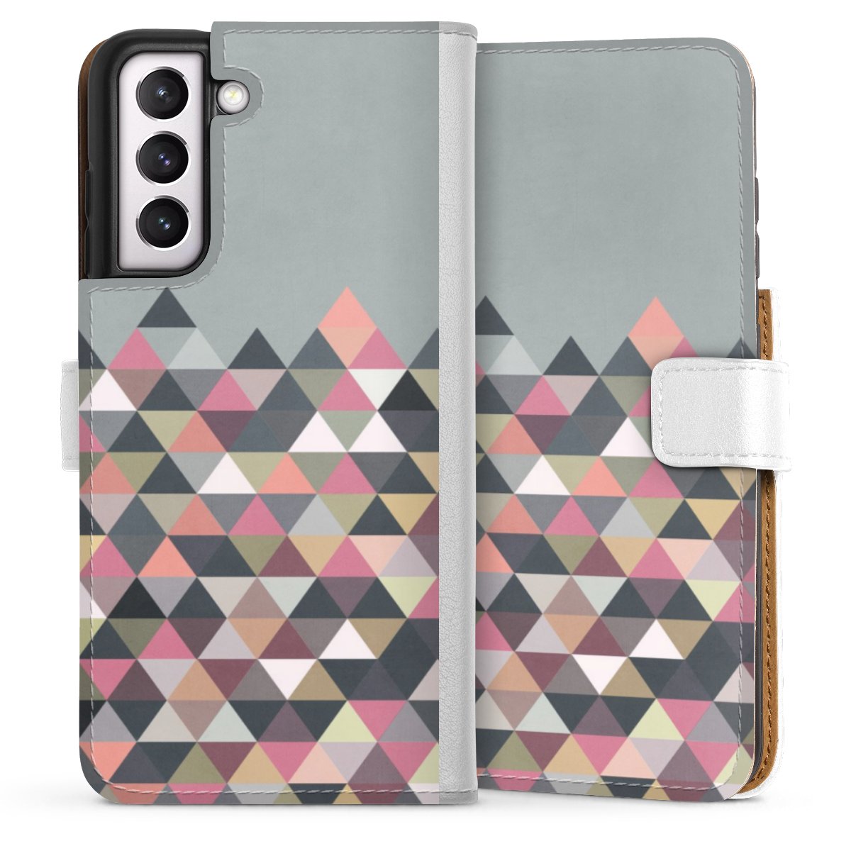 For our Sideflip Case we are using our advanced direct printing technology. The back and frontside are fully printabale, the inside of the phone bag is left unprinted. You can order the phone case without print, printed completely or also with a partial print.