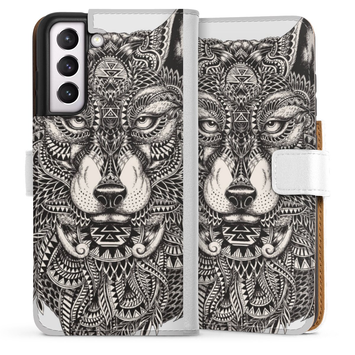 For our Sideflip Case we are using our advanced direct printing technology. The back and frontside are fully printabale, the inside of the phone bag is left unprinted. You can order the phone case without print, printed completely or also with a partial print.