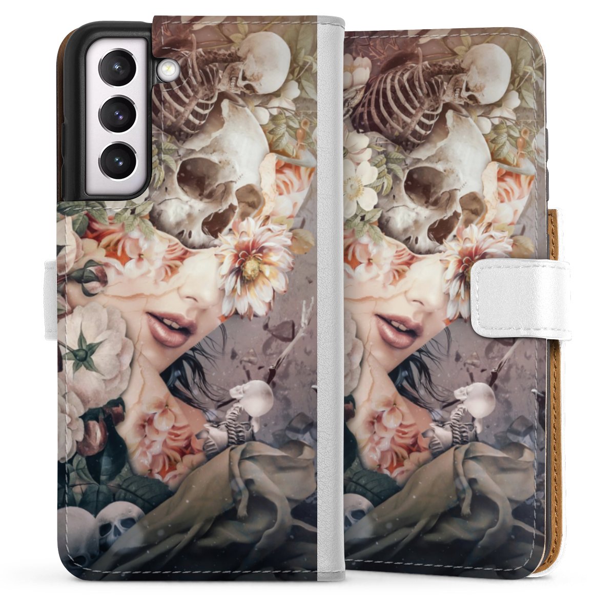 For our Sideflip Case we are using our advanced direct printing technology. The back and frontside are fully printabale, the inside of the phone bag is left unprinted. You can order the phone case without print, printed completely or also with a partial print.