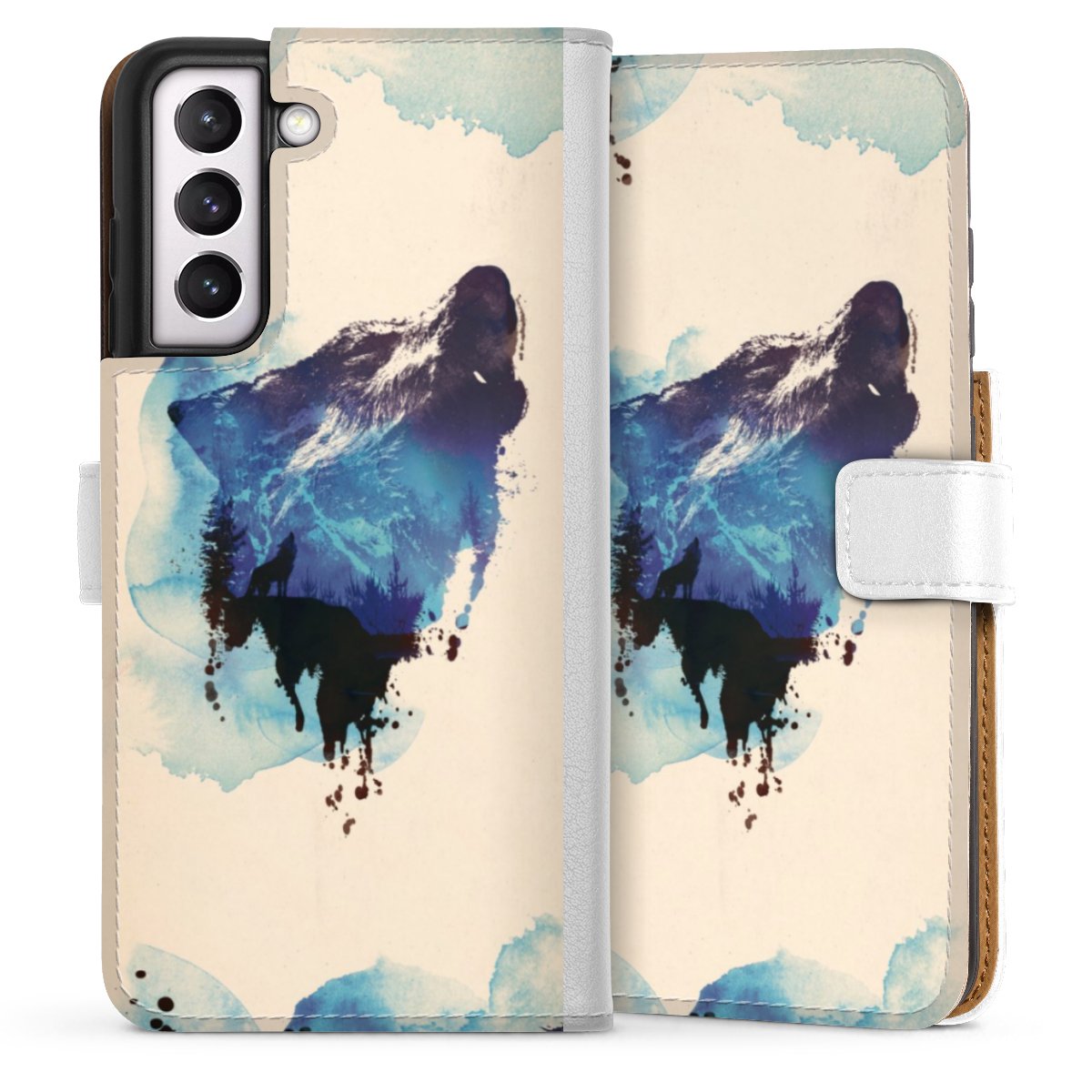 For our Sideflip Case we are using our advanced direct printing technology. The back and frontside are fully printabale, the inside of the phone bag is left unprinted. You can order the phone case without print, printed completely or also with a partial print.