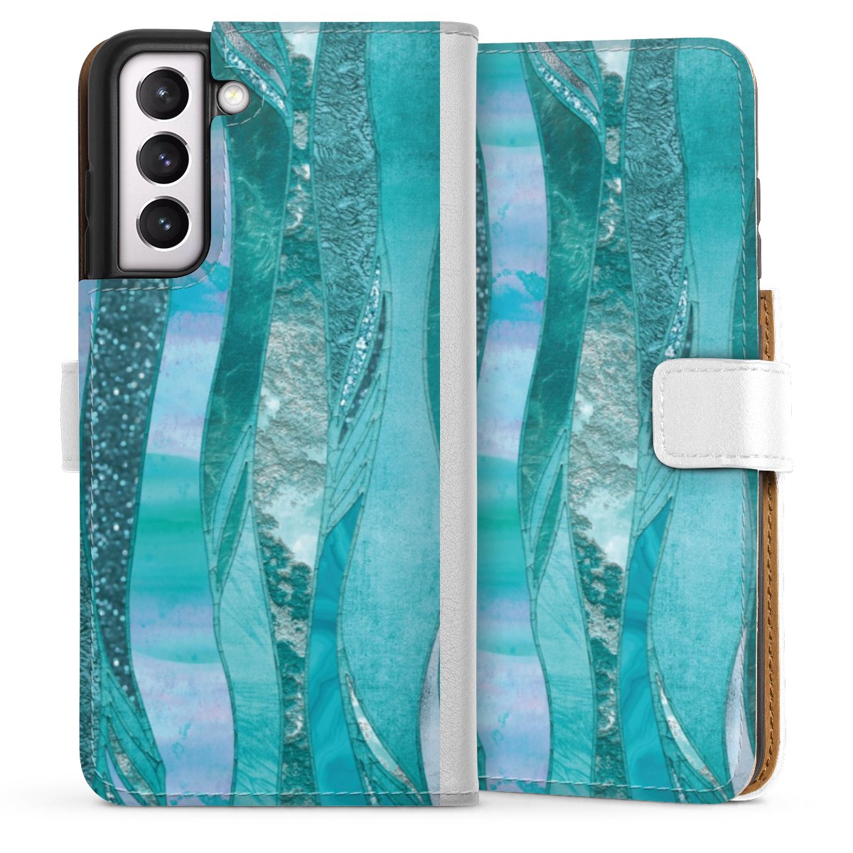 For our Sideflip Case we are using our advanced direct printing technology. The back and frontside are fully printabale, the inside of the phone bag is left unprinted. You can order the phone case without print, printed completely or also with a partial print.