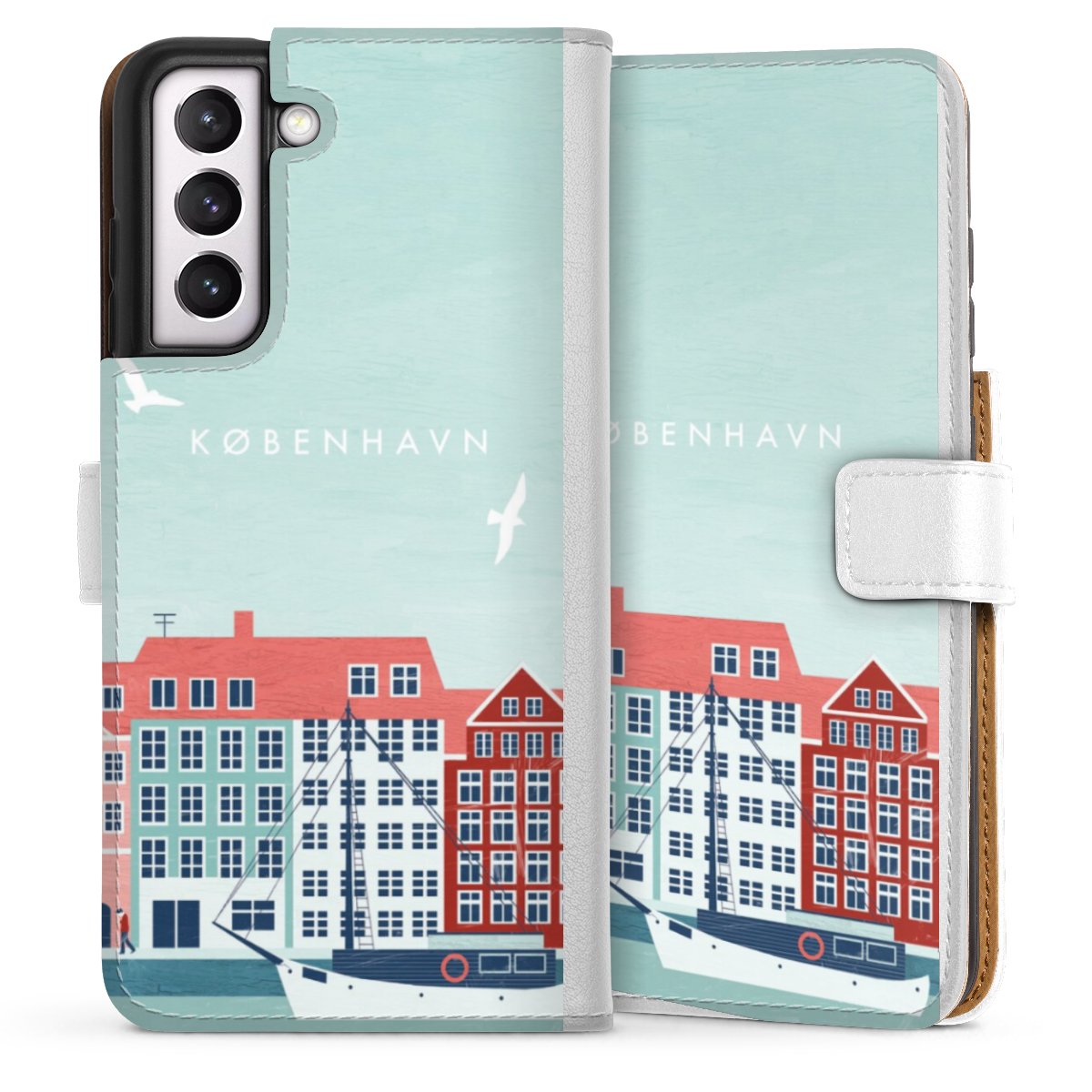 For our Sideflip Case we are using our advanced direct printing technology. The back and frontside are fully printabale, the inside of the phone bag is left unprinted. You can order the phone case without print, printed completely or also with a partial print.