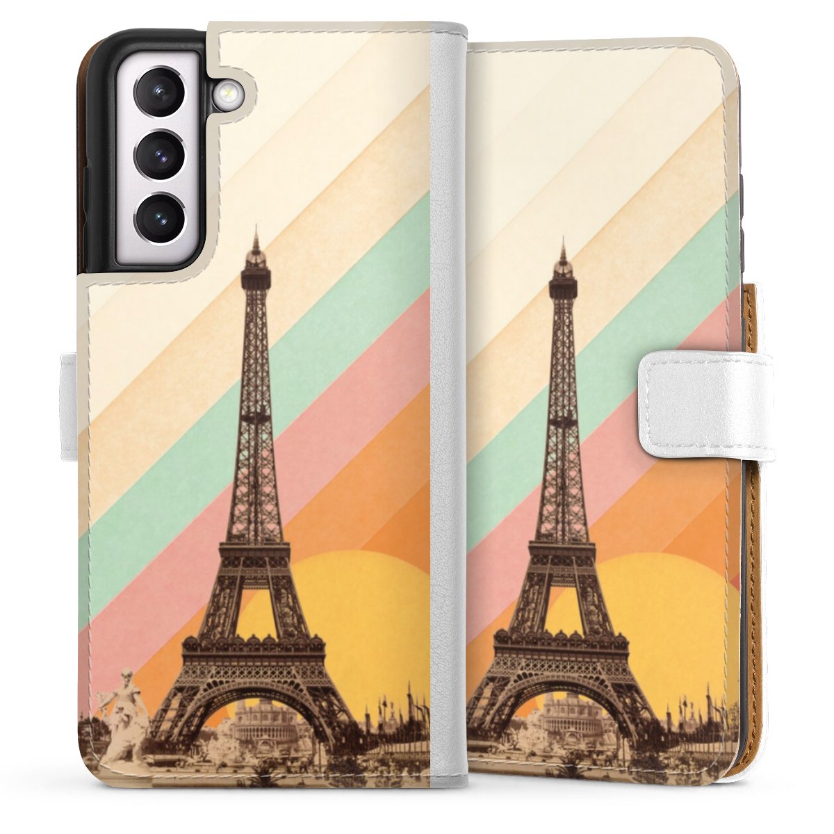 For our Sideflip Case we are using our advanced direct printing technology. The back and frontside are fully printabale, the inside of the phone bag is left unprinted. You can order the phone case without print, printed completely or also with a partial print.