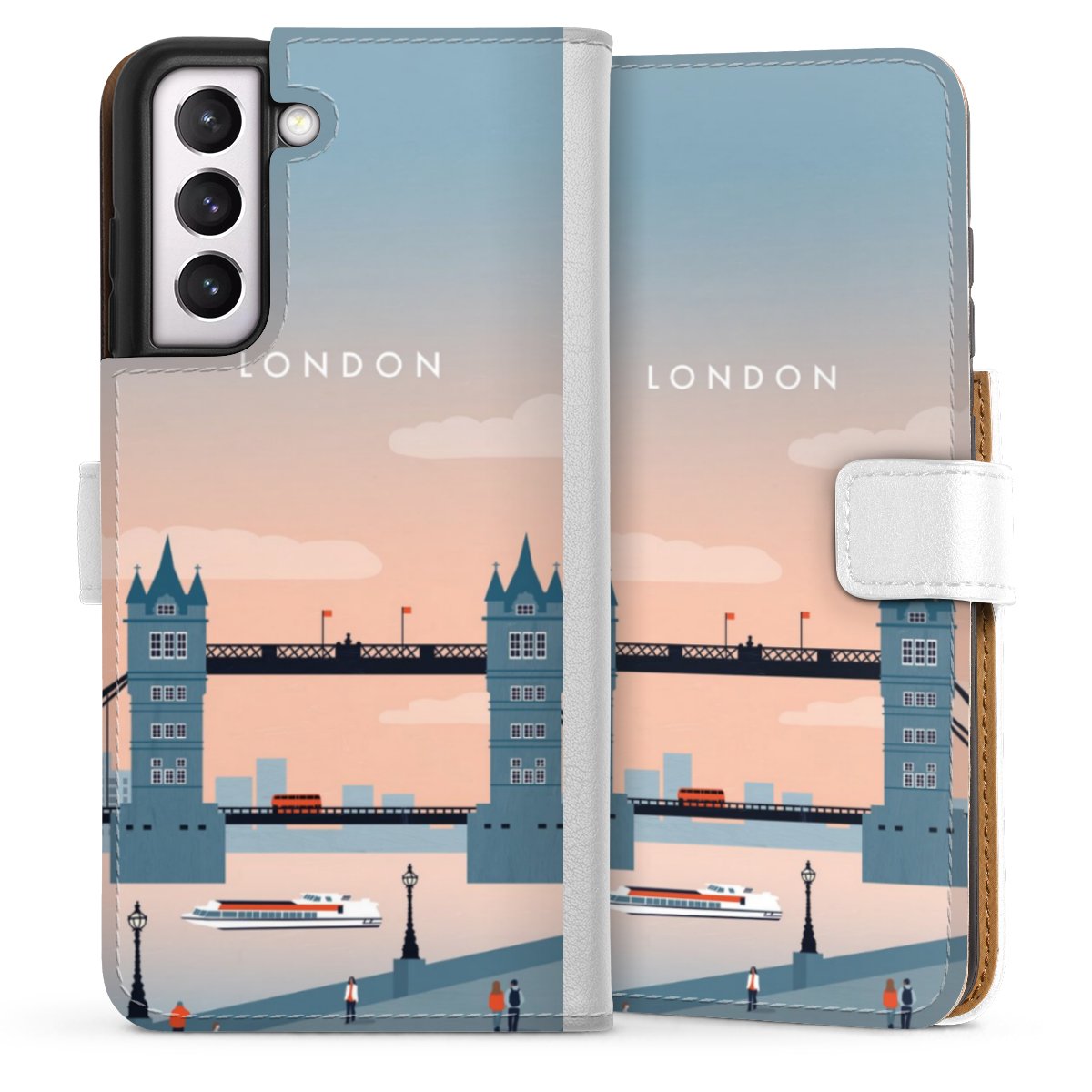 For our Sideflip Case we are using our advanced direct printing technology. The back and frontside are fully printabale, the inside of the phone bag is left unprinted. You can order the phone case without print, printed completely or also with a partial print.