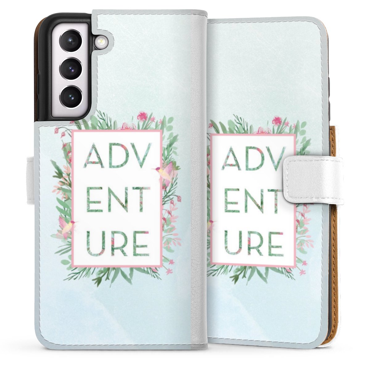 For our Sideflip Case we are using our advanced direct printing technology. The back and frontside are fully printabale, the inside of the phone bag is left unprinted. You can order the phone case without print, printed completely or also with a partial print.