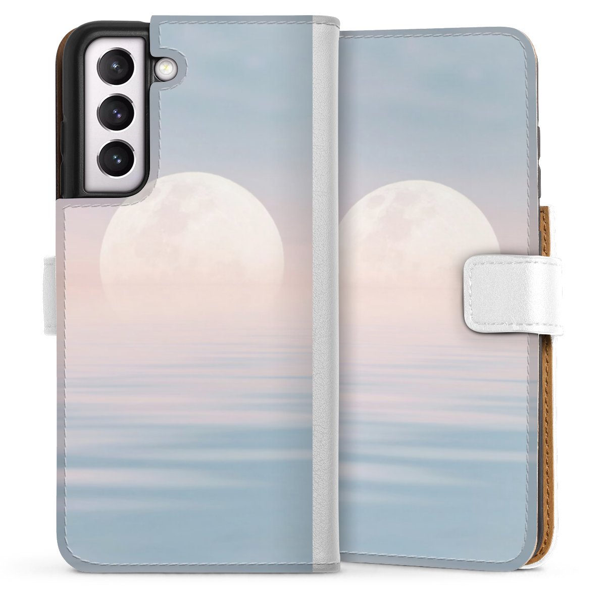 For our Sideflip Case we are using our advanced direct printing technology. The back and frontside are fully printabale, the inside of the phone bag is left unprinted. You can order the phone case without print, printed completely or also with a partial print.