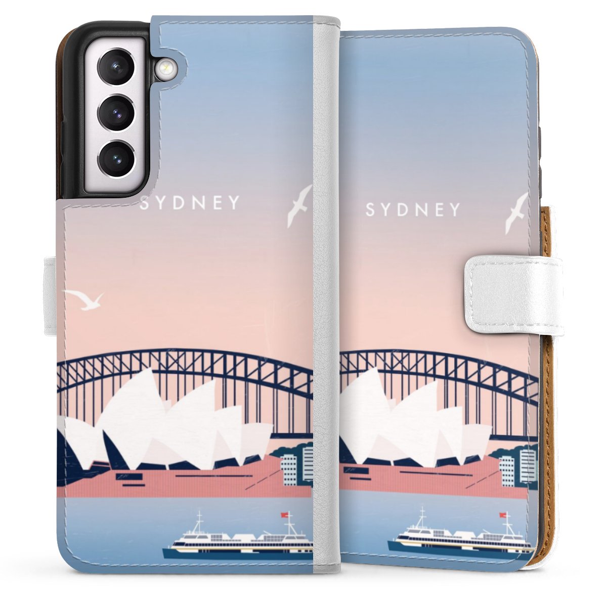 For our Sideflip Case we are using our advanced direct printing technology. The back and frontside are fully printabale, the inside of the phone bag is left unprinted. You can order the phone case without print, printed completely or also with a partial print.