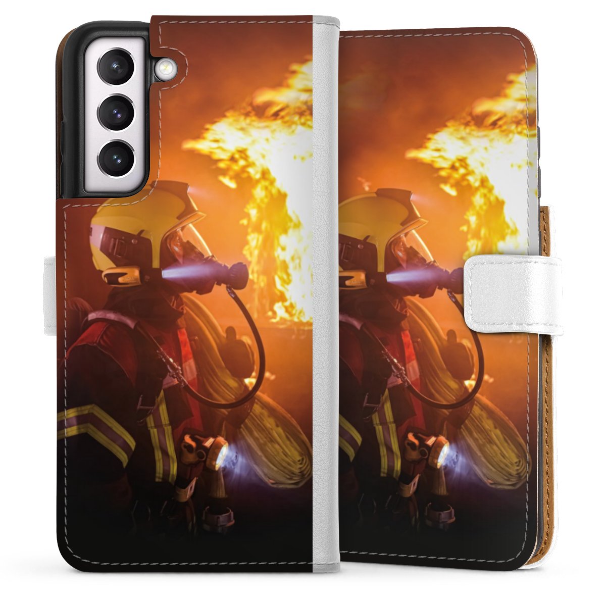 For our Sideflip Case we are using our advanced direct printing technology. The back and frontside are fully printabale, the inside of the phone bag is left unprinted. You can order the phone case without print, printed completely or also with a partial print.