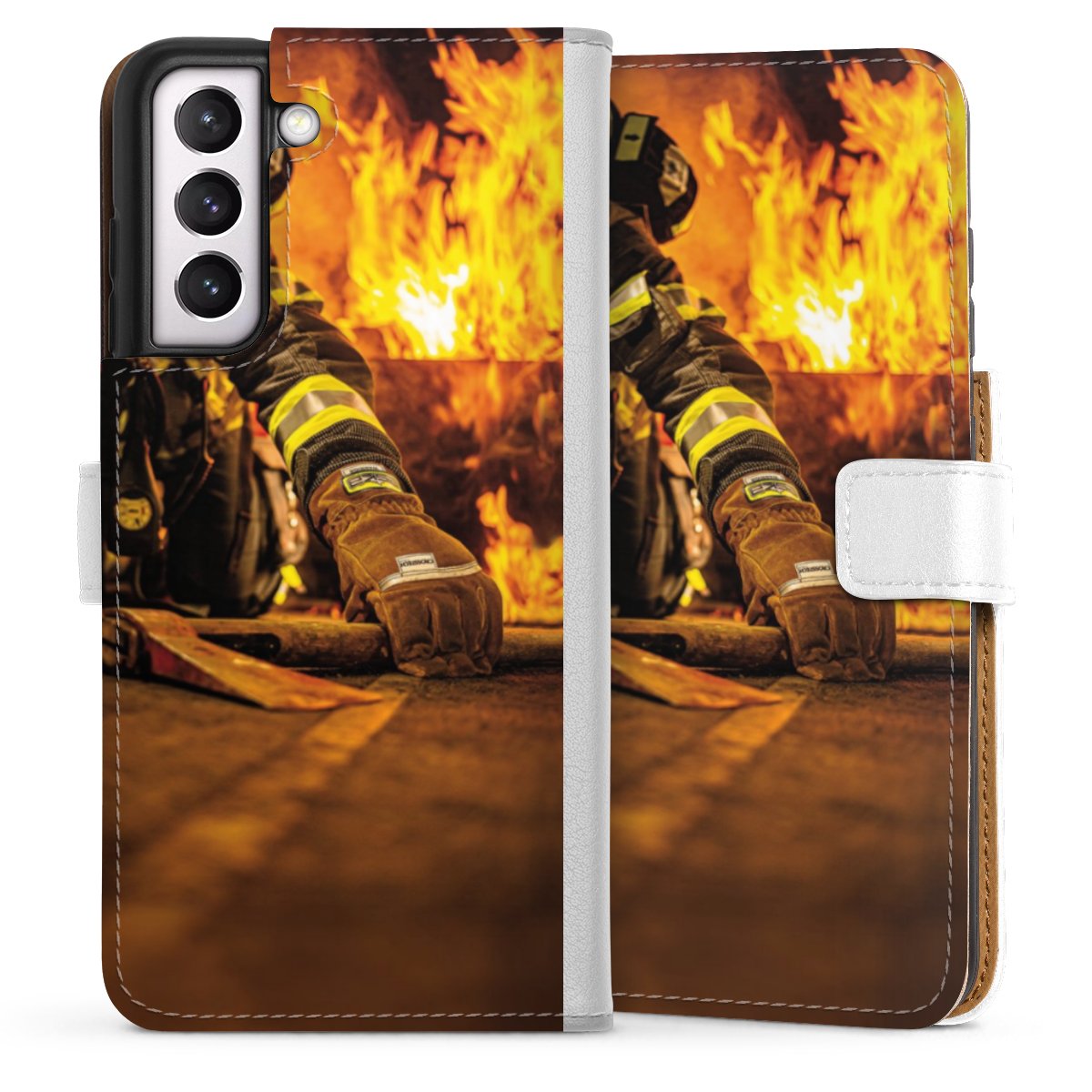 For our Sideflip Case we are using our advanced direct printing technology. The back and frontside are fully printabale, the inside of the phone bag is left unprinted. You can order the phone case without print, printed completely or also with a partial print.