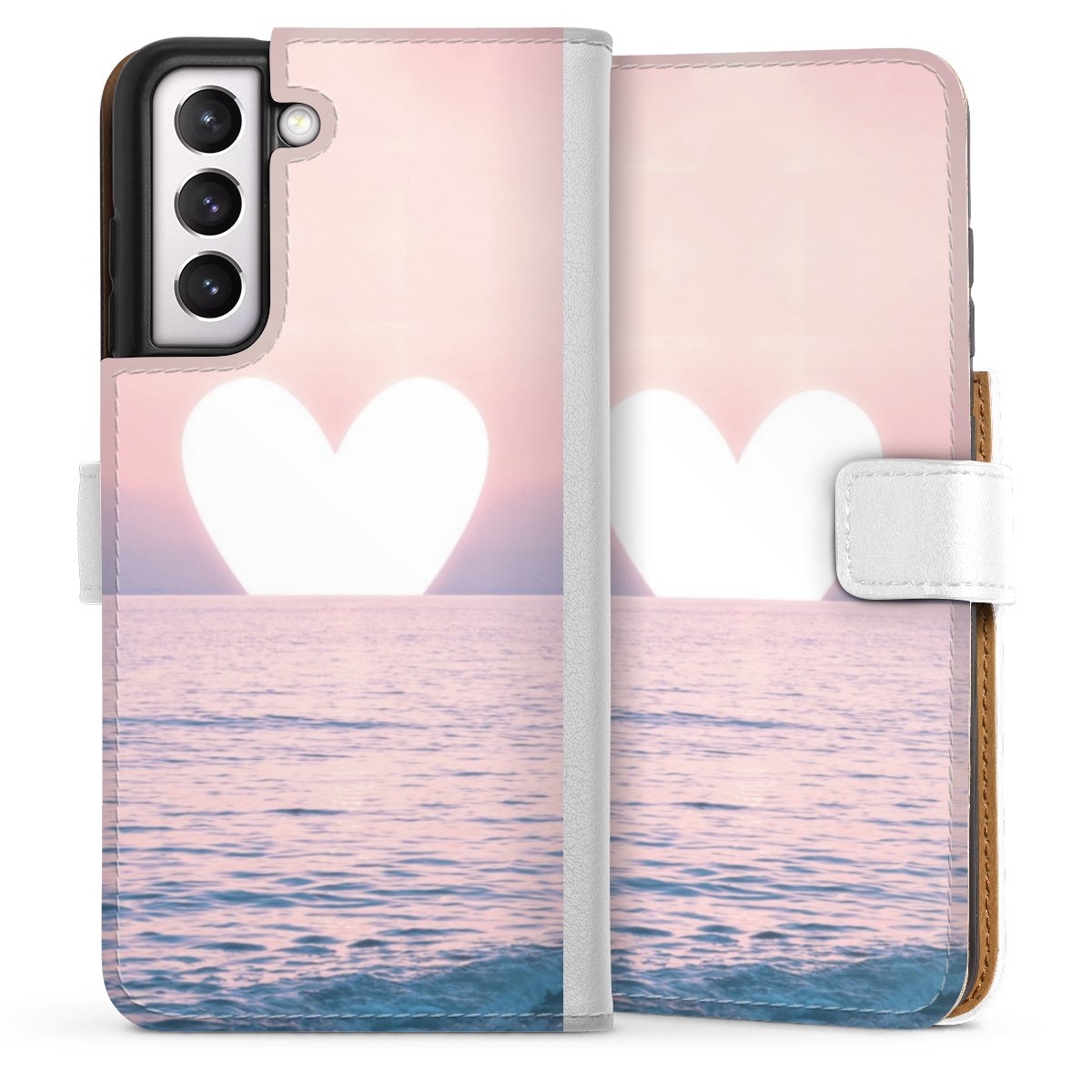 For our Sideflip Case we are using our advanced direct printing technology. The back and frontside are fully printabale, the inside of the phone bag is left unprinted. You can order the phone case without print, printed completely or also with a partial print.
