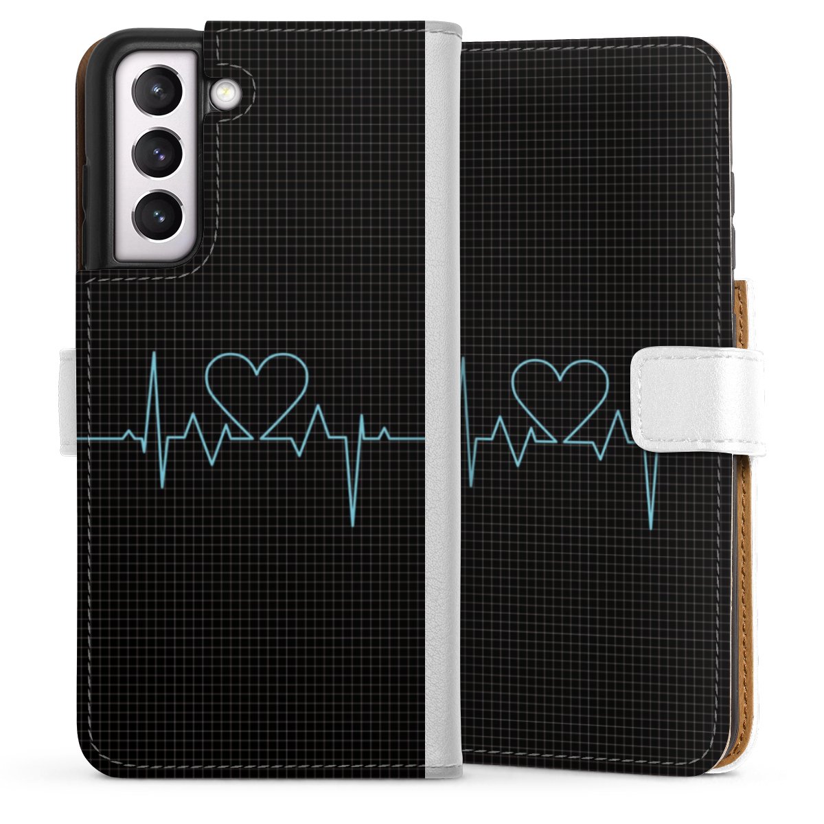 For our Sideflip Case we are using our advanced direct printing technology. The back and frontside are fully printabale, the inside of the phone bag is left unprinted. You can order the phone case without print, printed completely or also with a partial print.