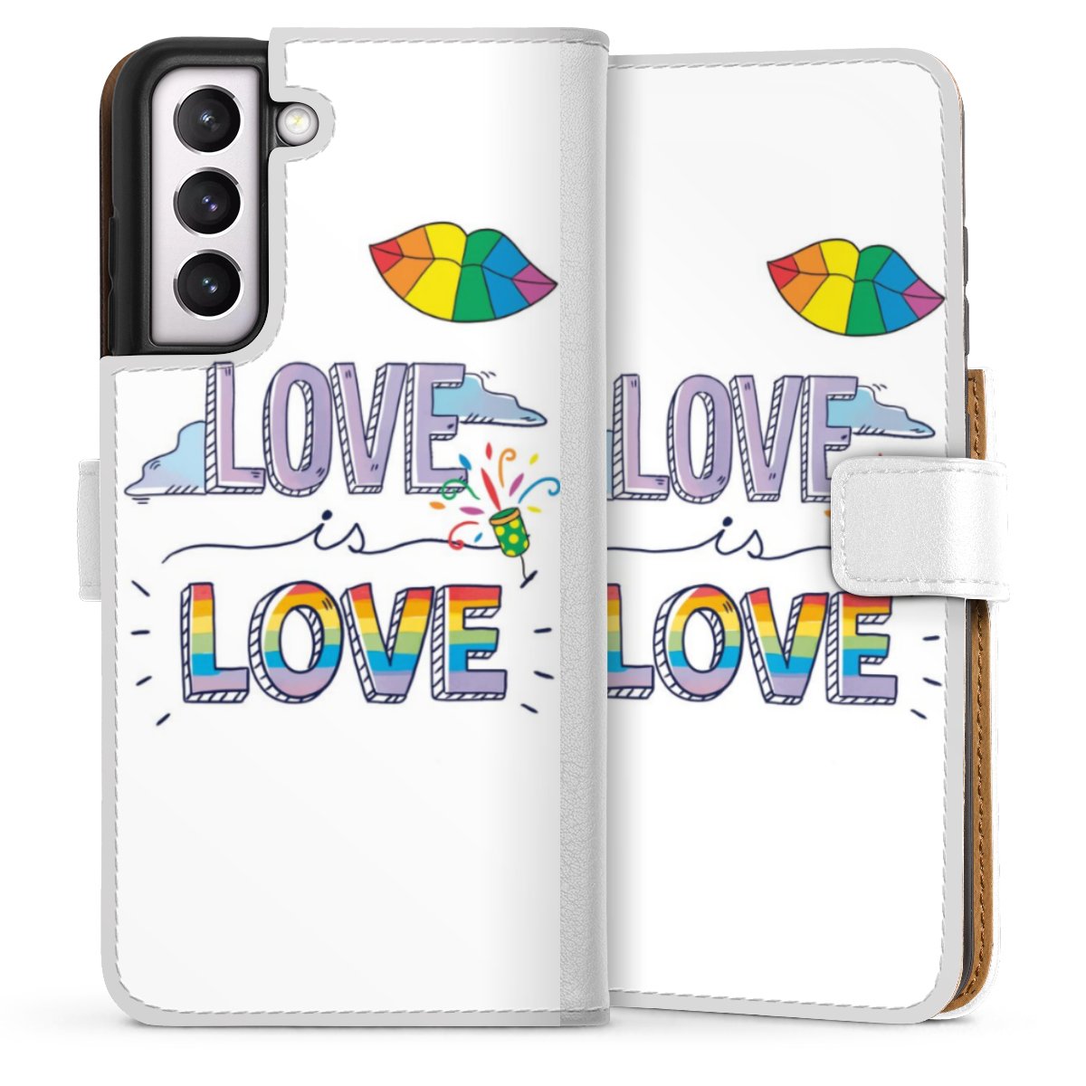 For our Sideflip Case we are using our advanced direct printing technology. The back and frontside are fully printabale, the inside of the phone bag is left unprinted. You can order the phone case without print, printed completely or also with a partial print.