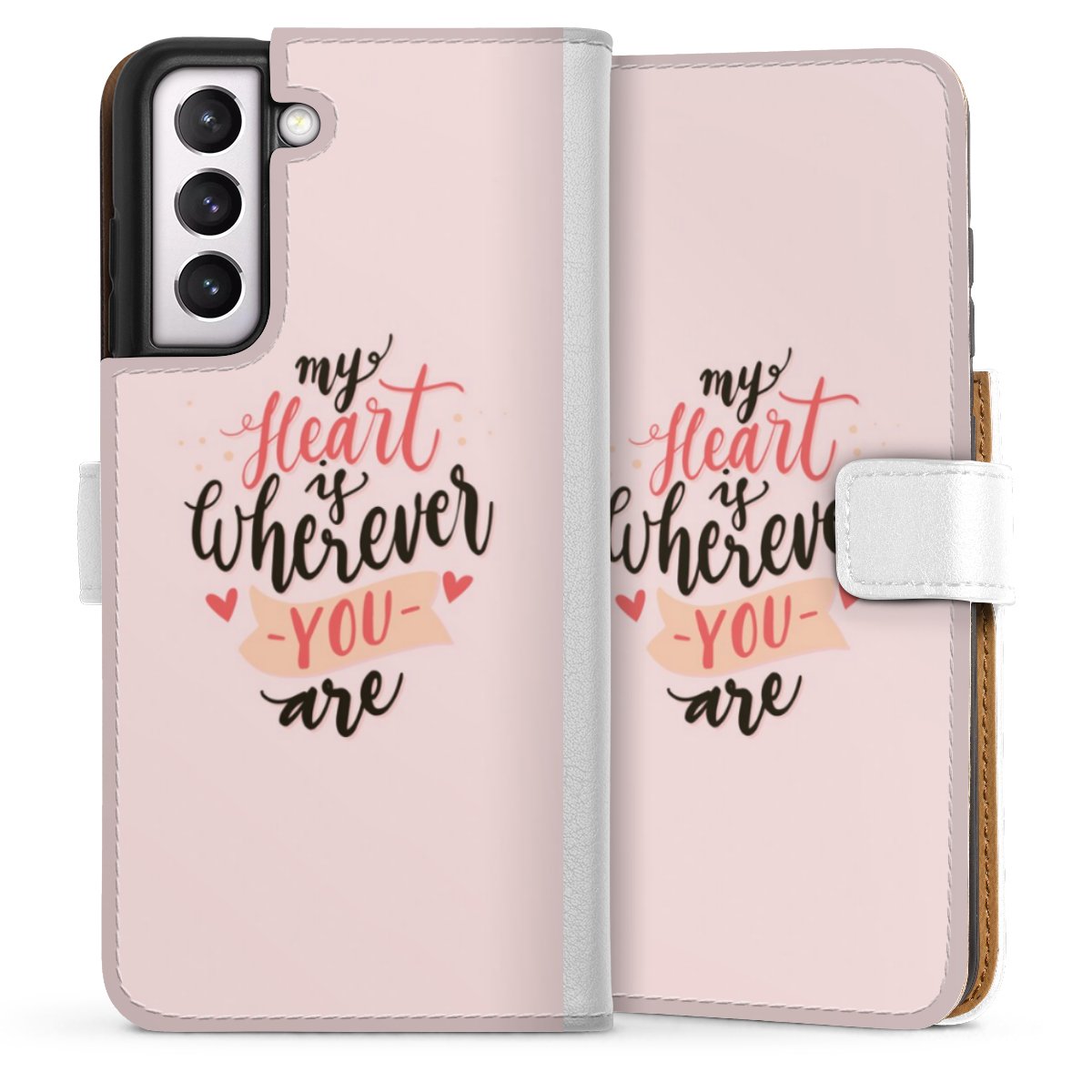 For our Sideflip Case we are using our advanced direct printing technology. The back and frontside are fully printabale, the inside of the phone bag is left unprinted. You can order the phone case without print, printed completely or also with a partial print.
