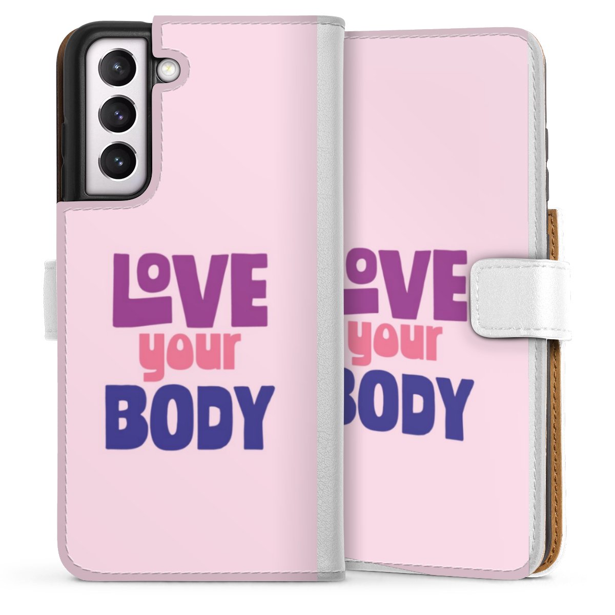 For our Sideflip Case we are using our advanced direct printing technology. The back and frontside are fully printabale, the inside of the phone bag is left unprinted. You can order the phone case without print, printed completely or also with a partial print.