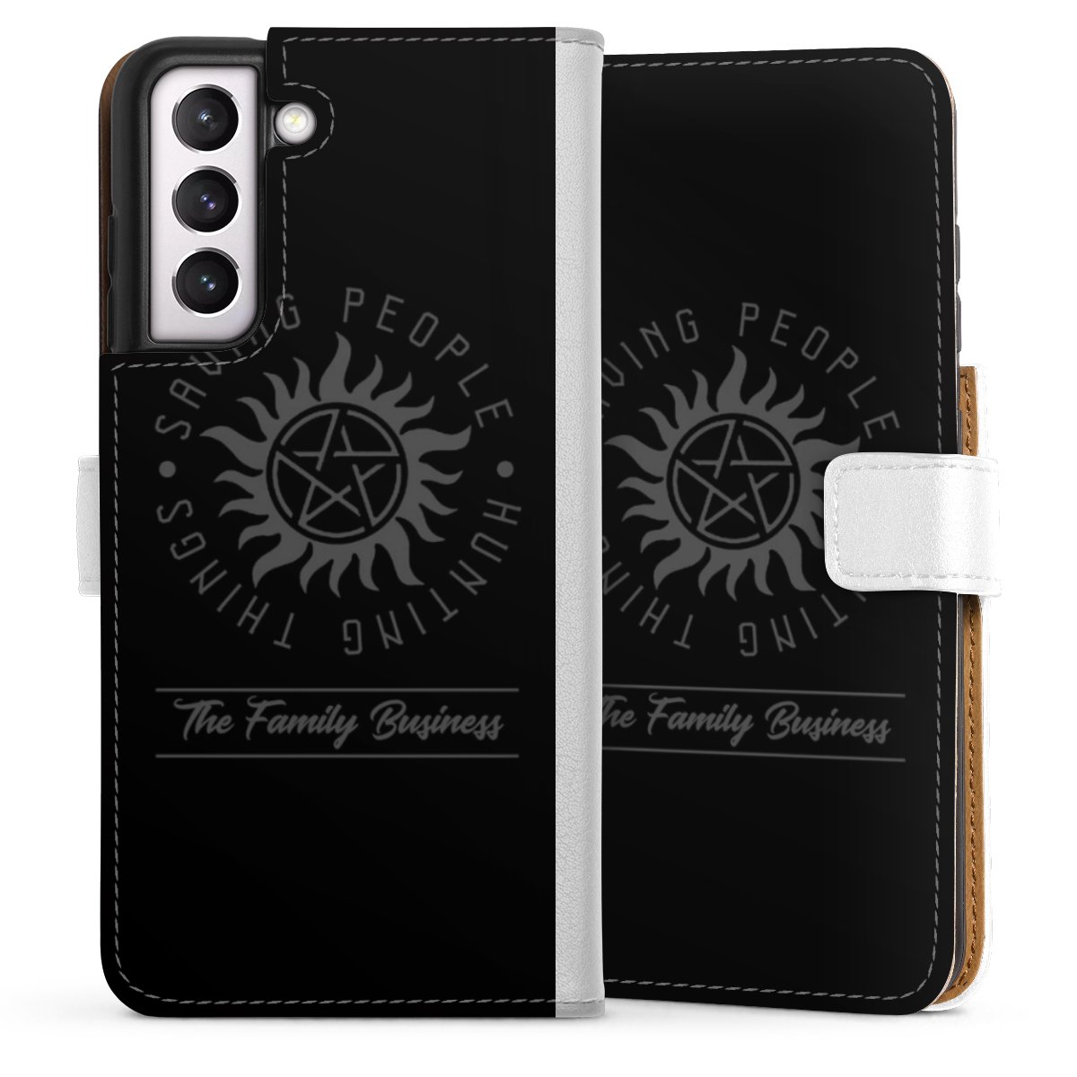 For our Sideflip Case we are using our advanced direct printing technology. The back and frontside are fully printabale, the inside of the phone bag is left unprinted. You can order the phone case without print, printed completely or also with a partial print.