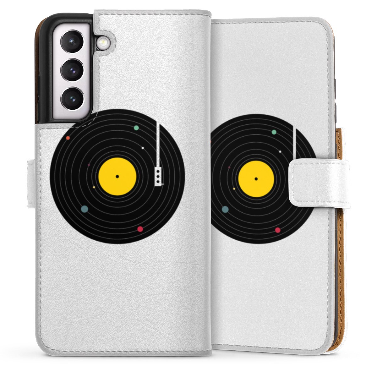 For our Sideflip Case we are using our advanced direct printing technology. The back and frontside are fully printabale, the inside of the phone bag is left unprinted. You can order the phone case without print, printed completely or also with a partial print.