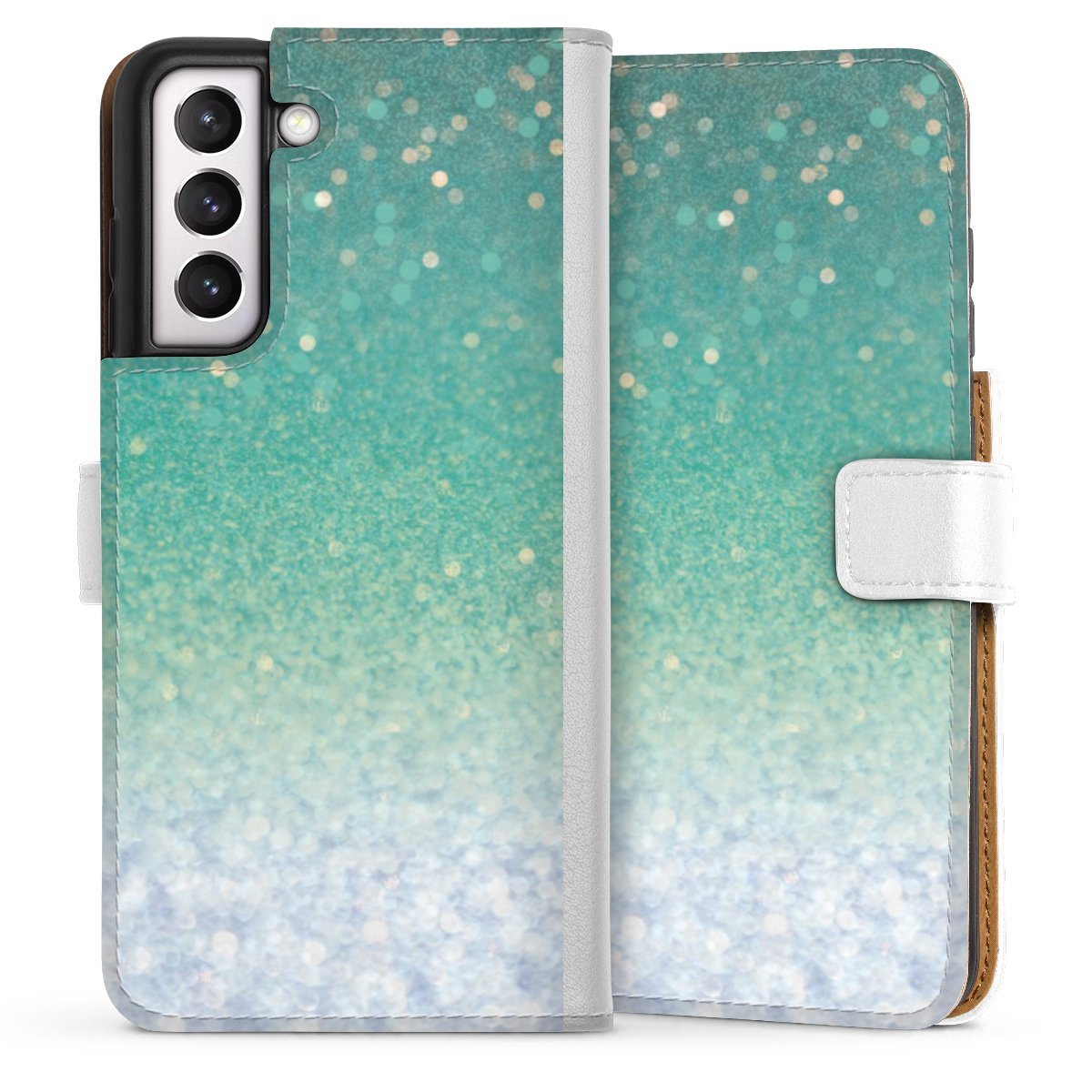 For our Sideflip Case we are using our advanced direct printing technology. The back and frontside are fully printabale, the inside of the phone bag is left unprinted. You can order the phone case without print, printed completely or also with a partial print.
