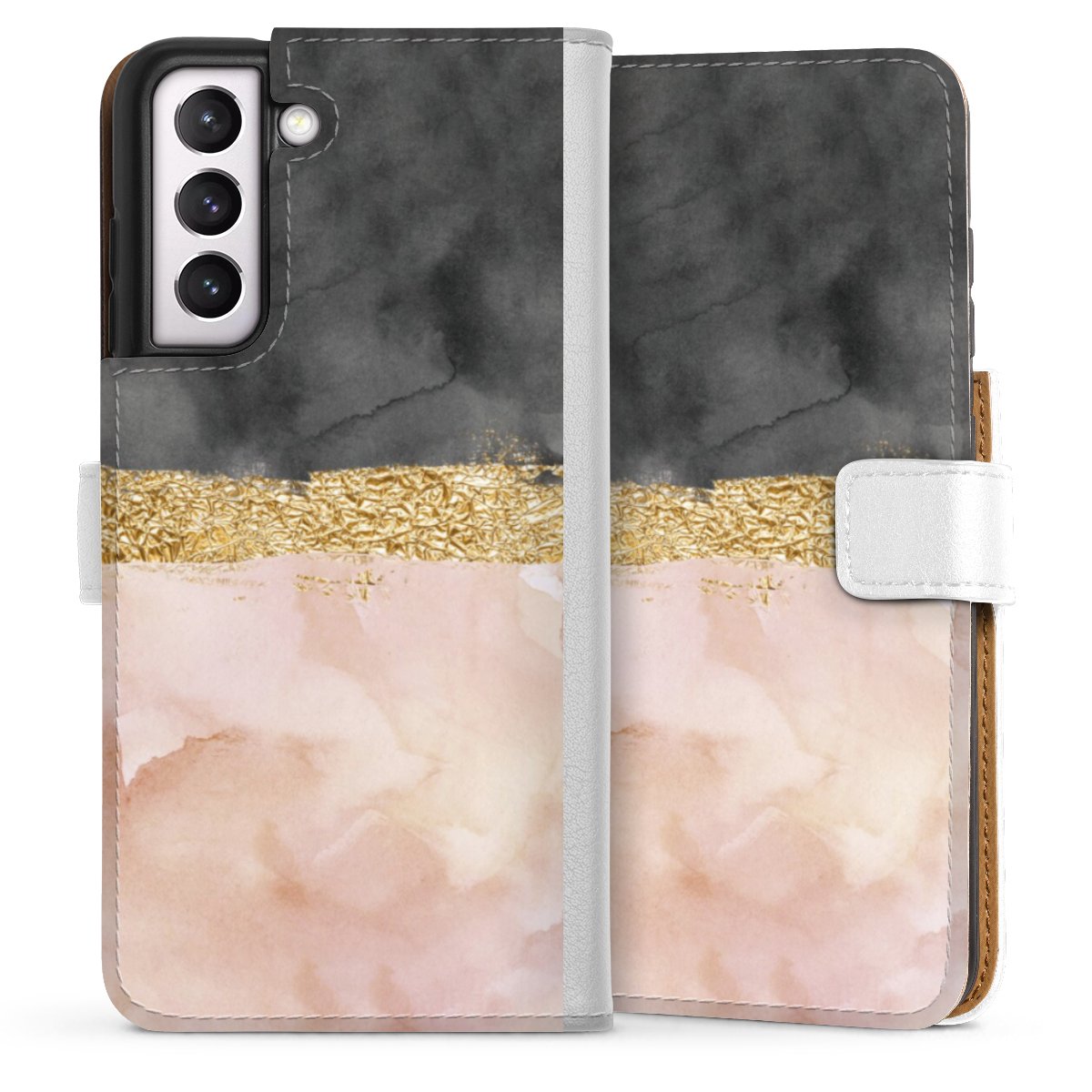 For our Sideflip Case we are using our advanced direct printing technology. The back and frontside are fully printabale, the inside of the phone bag is left unprinted. You can order the phone case without print, printed completely or also with a partial print.