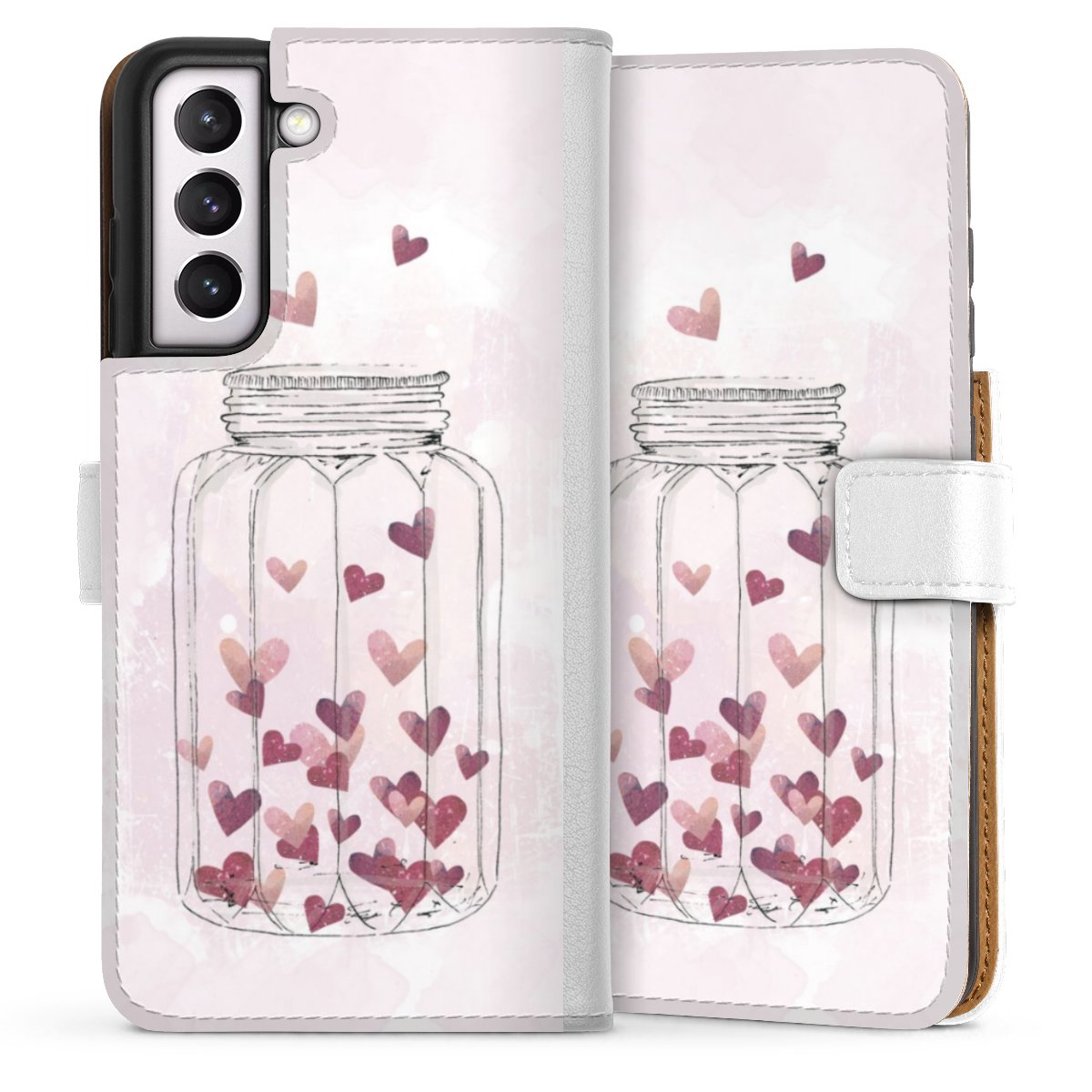 For our Sideflip Case we are using our advanced direct printing technology. The back and frontside are fully printabale, the inside of the phone bag is left unprinted. You can order the phone case without print, printed completely or also with a partial print.
