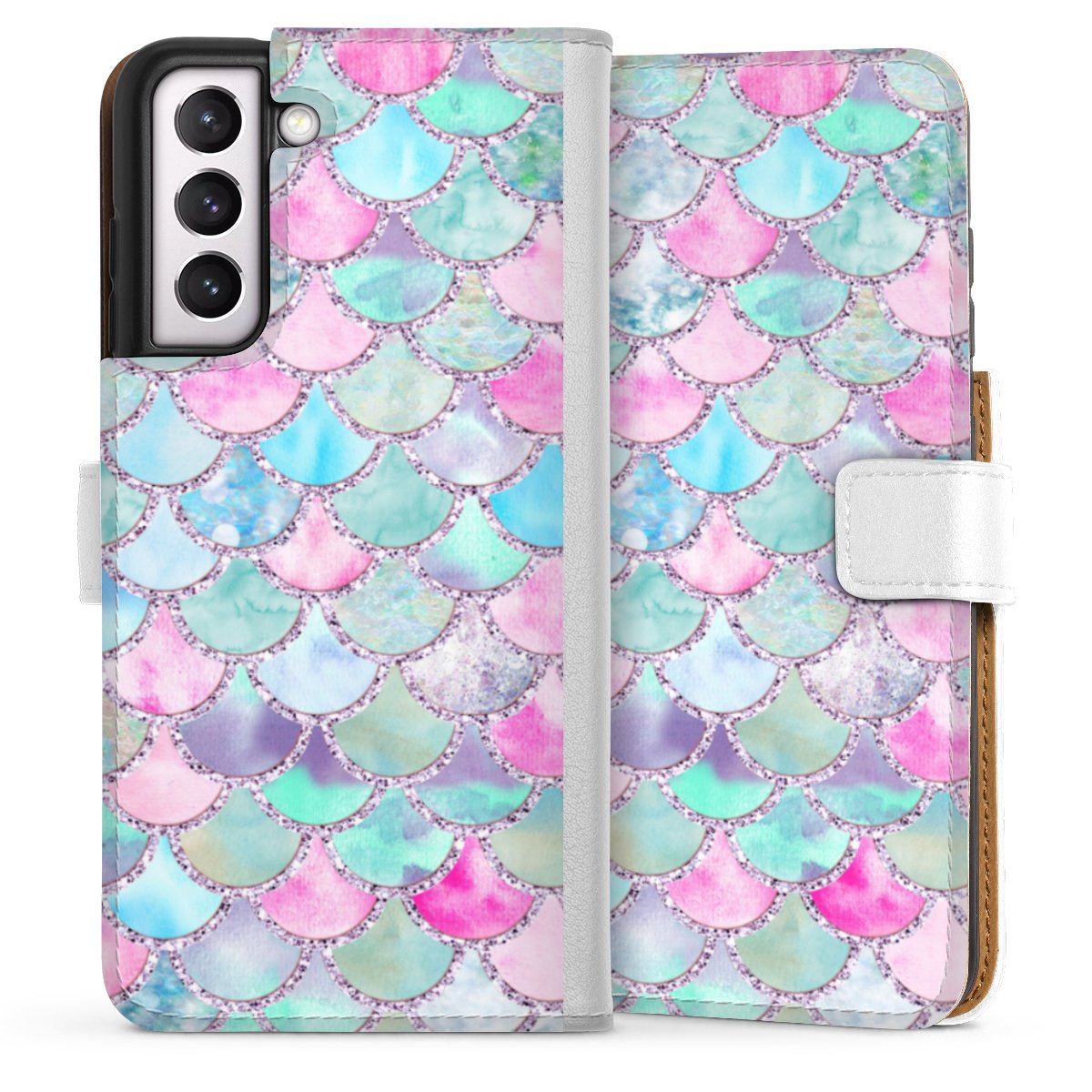 For our Sideflip Case we are using our advanced direct printing technology. The back and frontside are fully printabale, the inside of the phone bag is left unprinted. You can order the phone case without print, printed completely or also with a partial print.